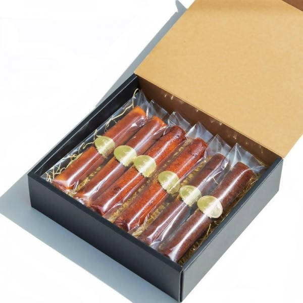 「ガレット・ブルトンヌ」に比べ直径14.5cm程と少し大きくしたような見た目の焼き菓子です。見た目は似ていても製法や材料の配合などが少し異なり、ケーキのようにしっとりと焼き上げるのが特徴。中には赤ワインでコンポートされたプルーンが入っており、贅沢な香りと味を楽しめます。