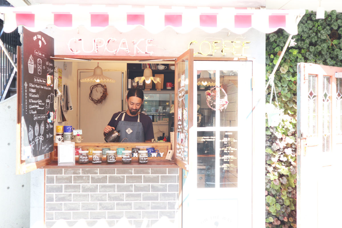 「ON THE WAY(オン ザ ウェイ)を出店するにあたり、コーヒーだけだと味気ないと思っていました。また、やっぱり駅前とかで人通りが多いところであればコーヒーだけでもいけるかもしれないのですが、ここの店舗は人通りがそれほど多くはありません。どうにか話題になってわざわざ来ていただく目的を作る必要がありました。プラス、スイーツみたいなものがあれば、テイクアウトしてもらったりとか、一緒にコーヒーにあうものとしてカップケーキとかいいのではないかと思いました。」