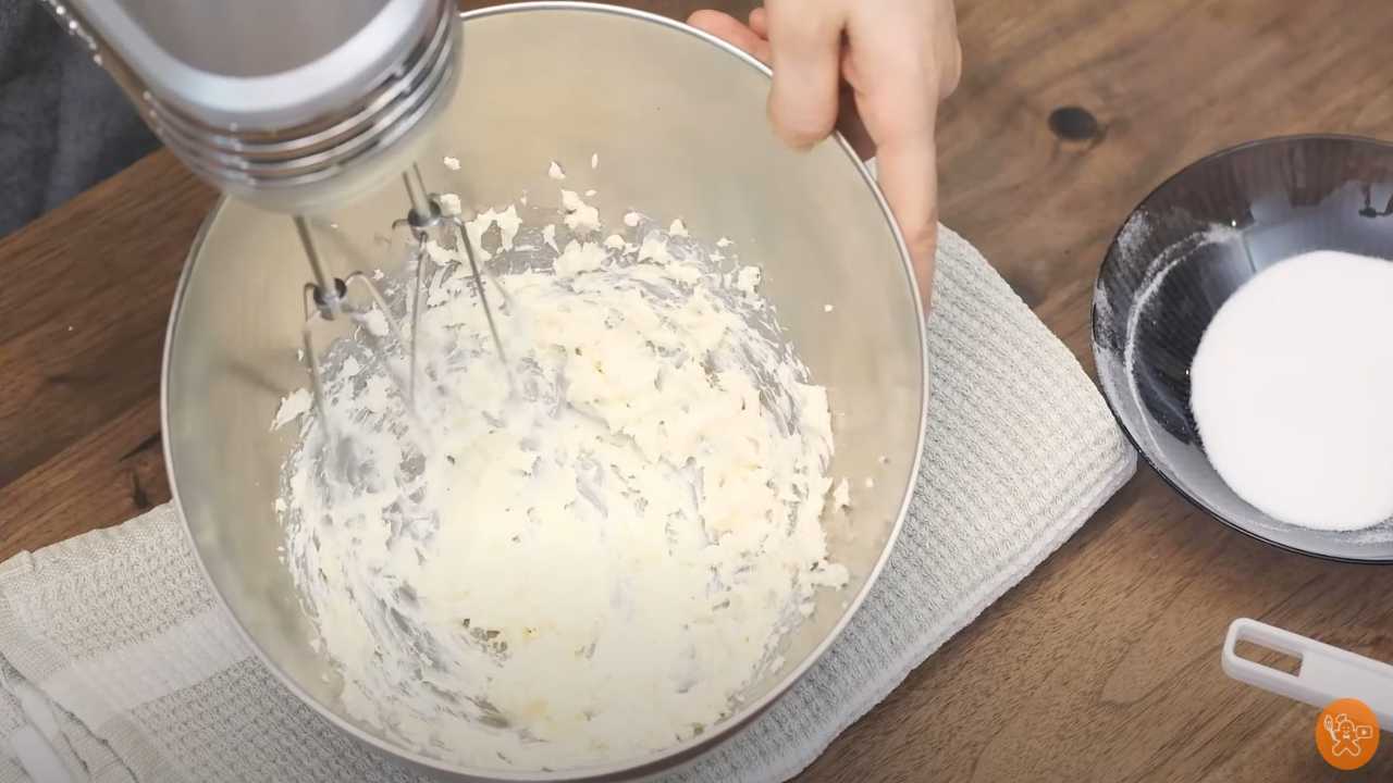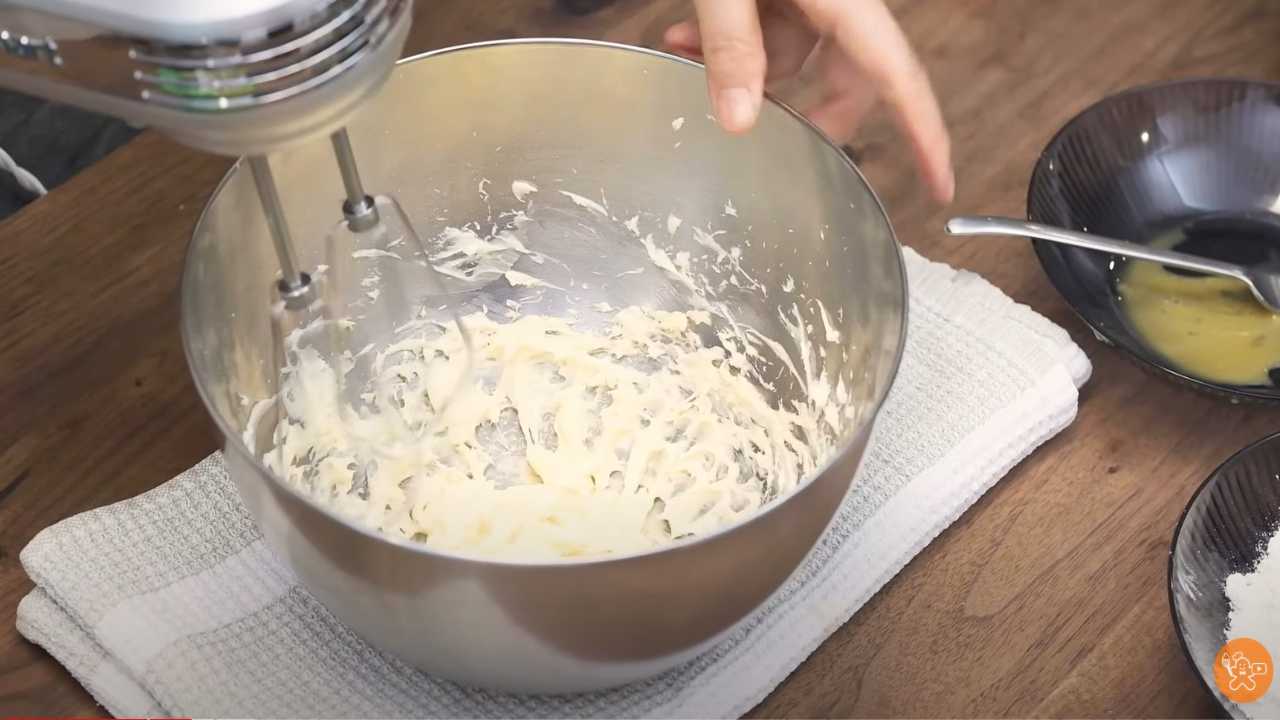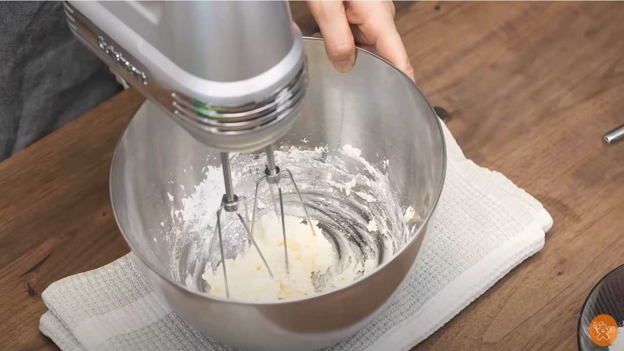 バターをクリーム状になめらかにし、粉糖、塩を入れて混ぜる。