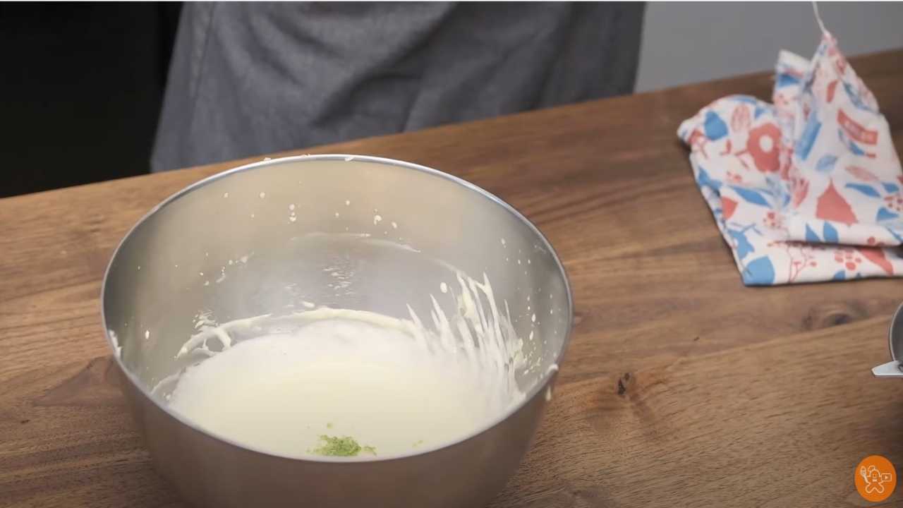 レモン果汁とレモン果皮(お好みでひとつまみくらい)を入れて混ぜる。