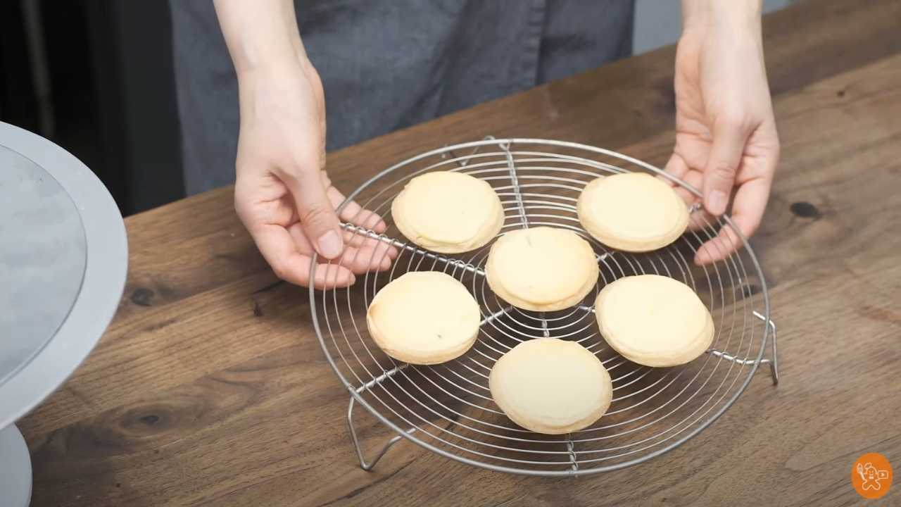 180℃のオーブンで約15分間焼く。オーブンから取り出し、浮いた生地を押して、さらに180℃のオーブンで2~3分間焼く。