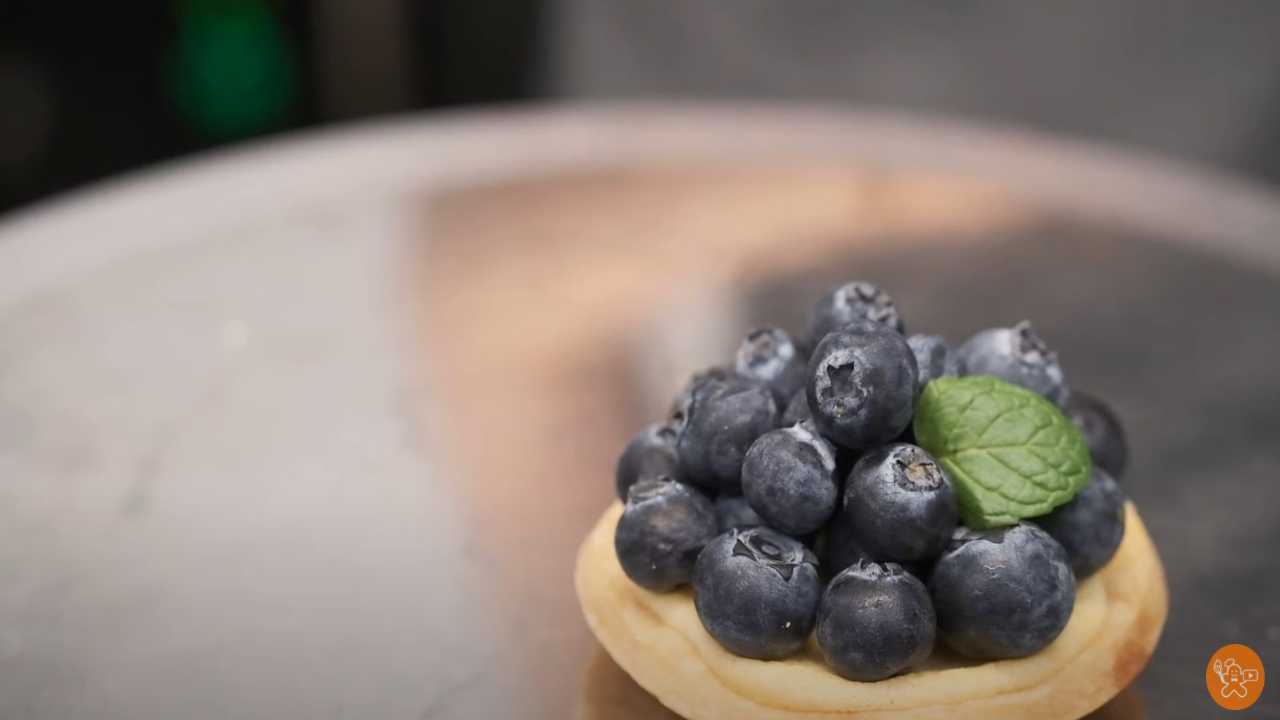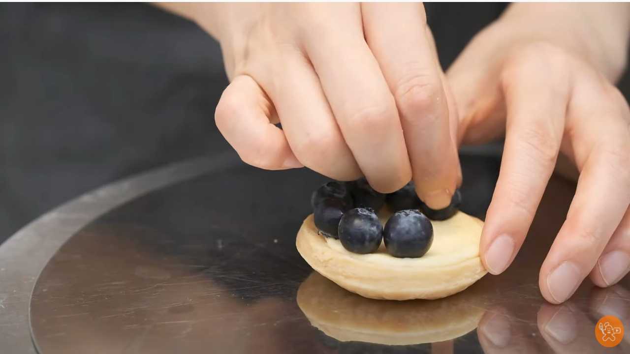 周りから順にブルーベリーを飾る。