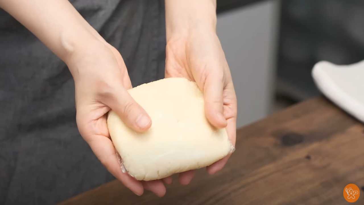 ラップに平らな形に包んで冷蔵庫で1時間以上休ませる。