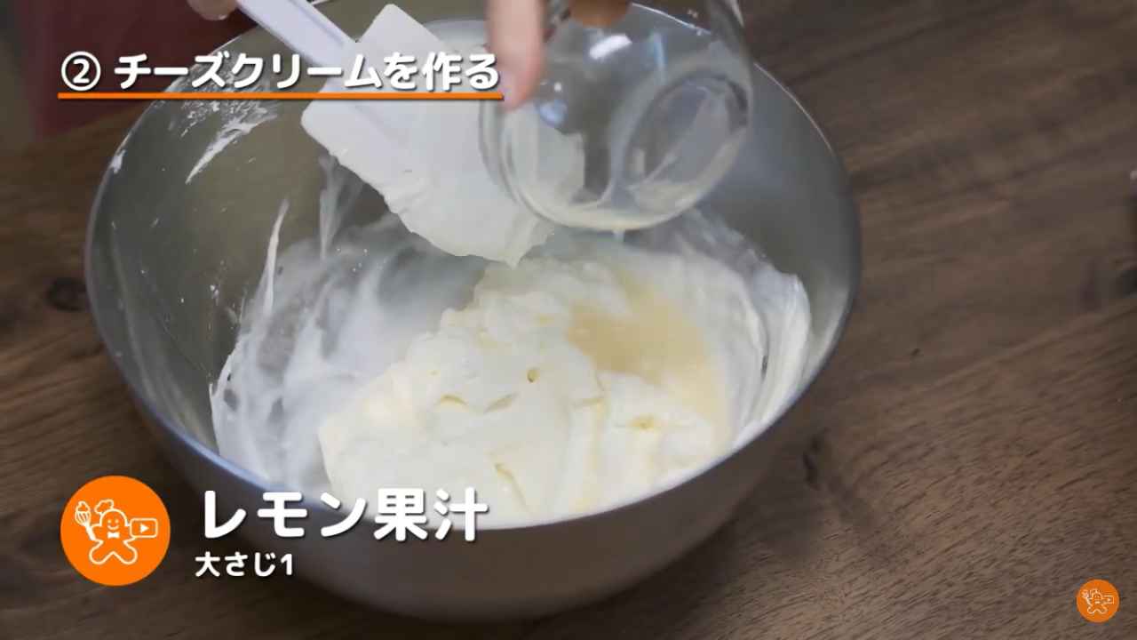 キルシュ(小さじ1)、レモン果汁(大さじ1)を加えて混ぜる。