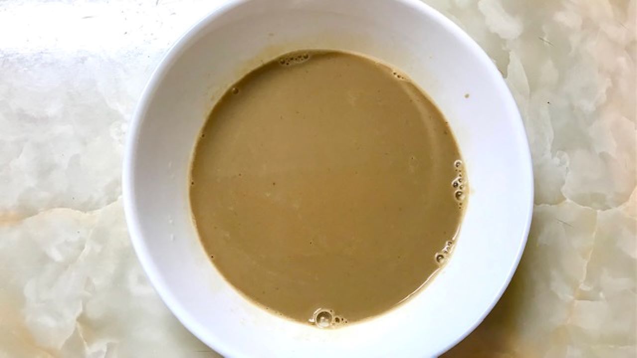 容器にインスタントコーヒーとお湯(小さじ2)を入れて丁寧に溶かします。