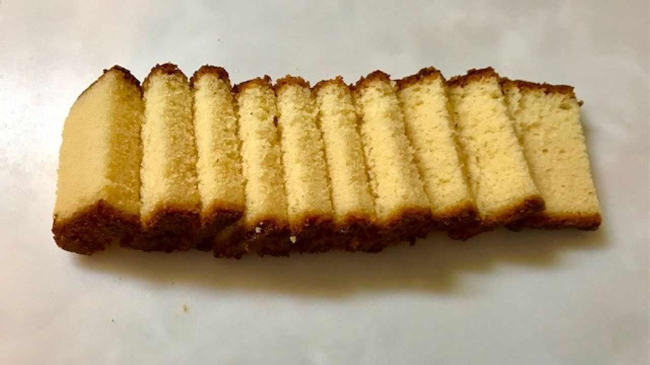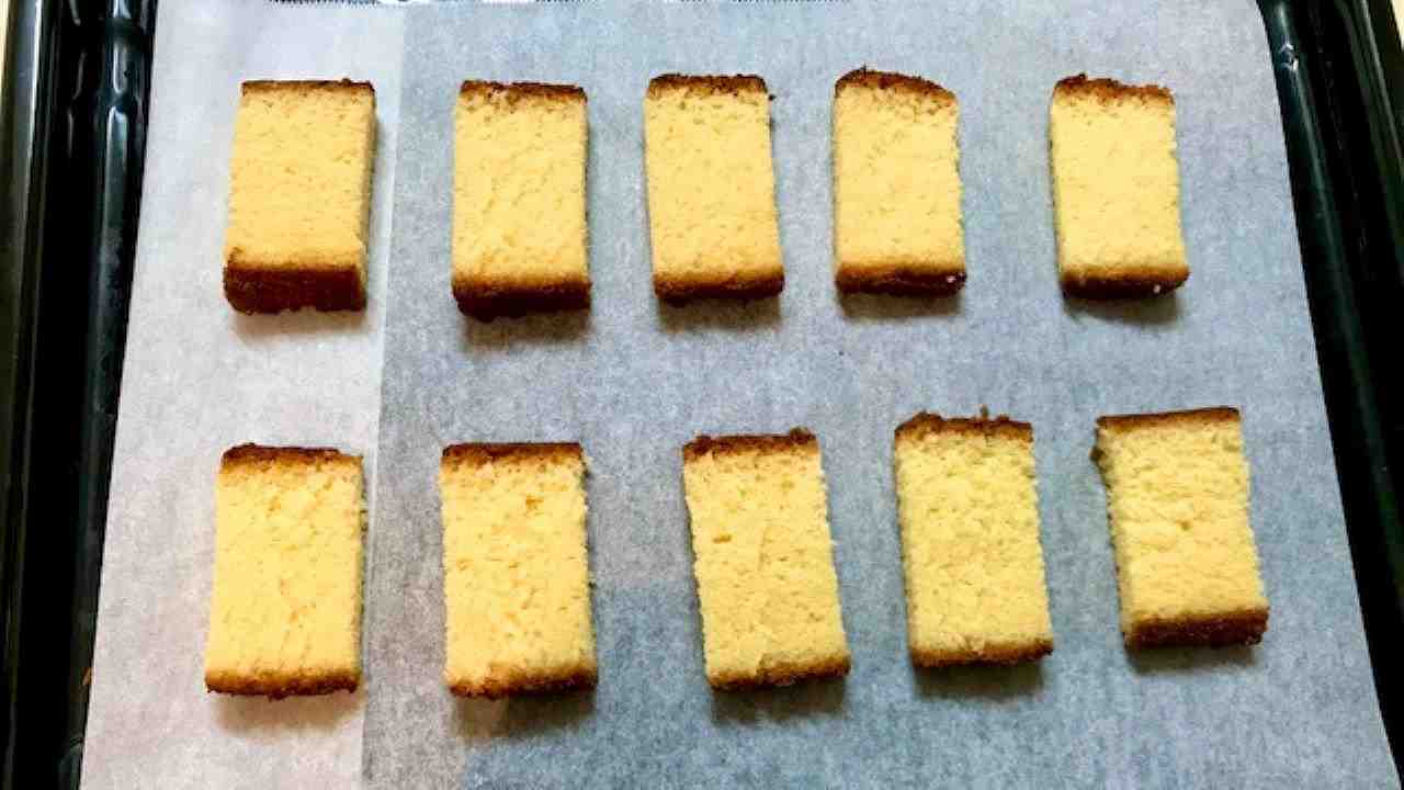 ラスクはカステラを薄くスライスしてオーブンで焼くだけ。簡単なのに食べ始めると止まらない美味しさです。