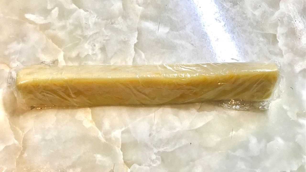 生地がまとまったらお好みの形に整えてラップに包み、30~40分冷凍庫へ入れます。※画像は三角柱です。棒状にしてもOKです。