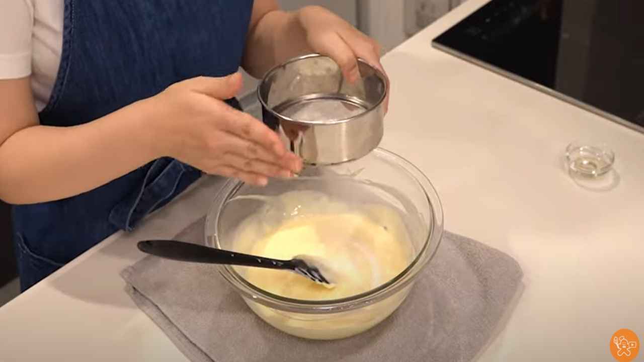 米粉をふるいにかけて少しずつ加えながら混ぜる。