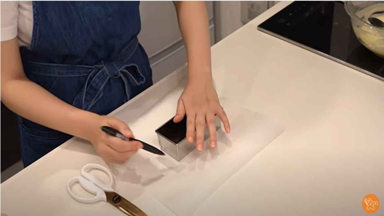 型にセットするオーブンシートを型取る。ペンでしるしをつけてからシートを切るとよい。