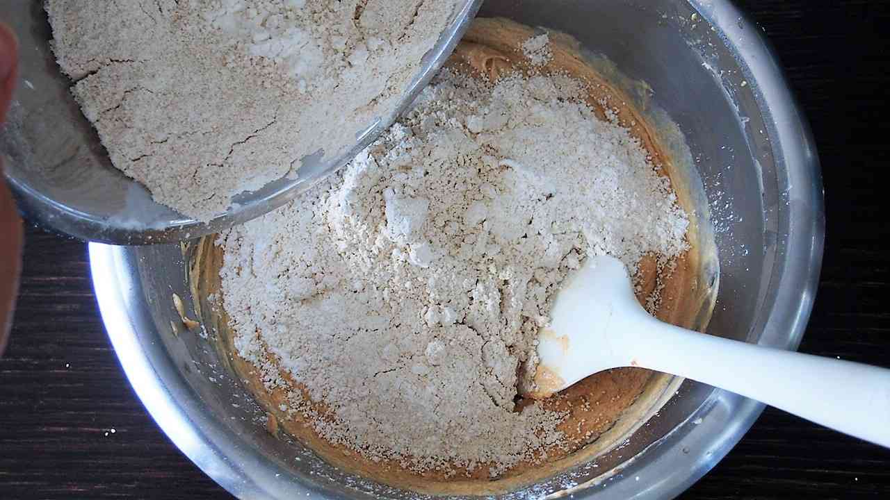 常温に戻したバターにふるっておいた粉類とカソナードを一気に加える。- 2
