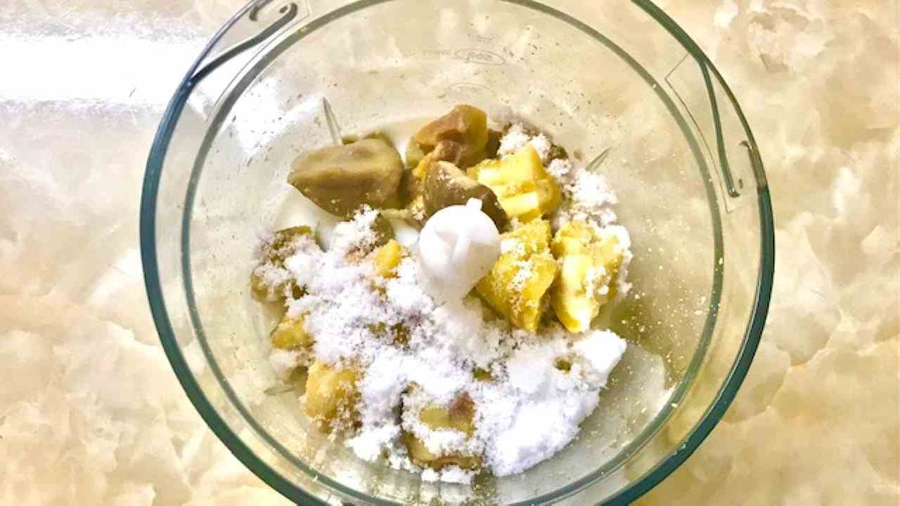 - マロンペーストは、茹でた栗を細かく砕いて、滑らかなペースト状にしたものです。