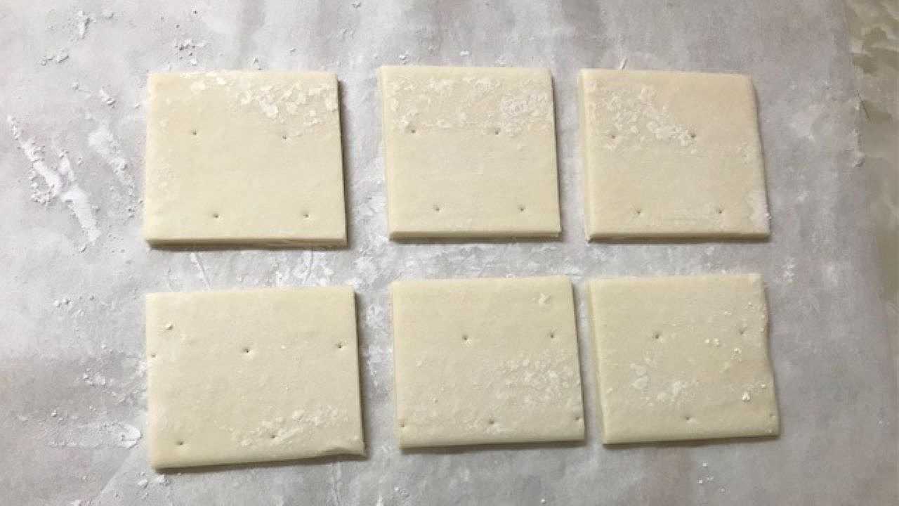 クッキングシートの上にパイシートを1枚置き、6等分にカットします。