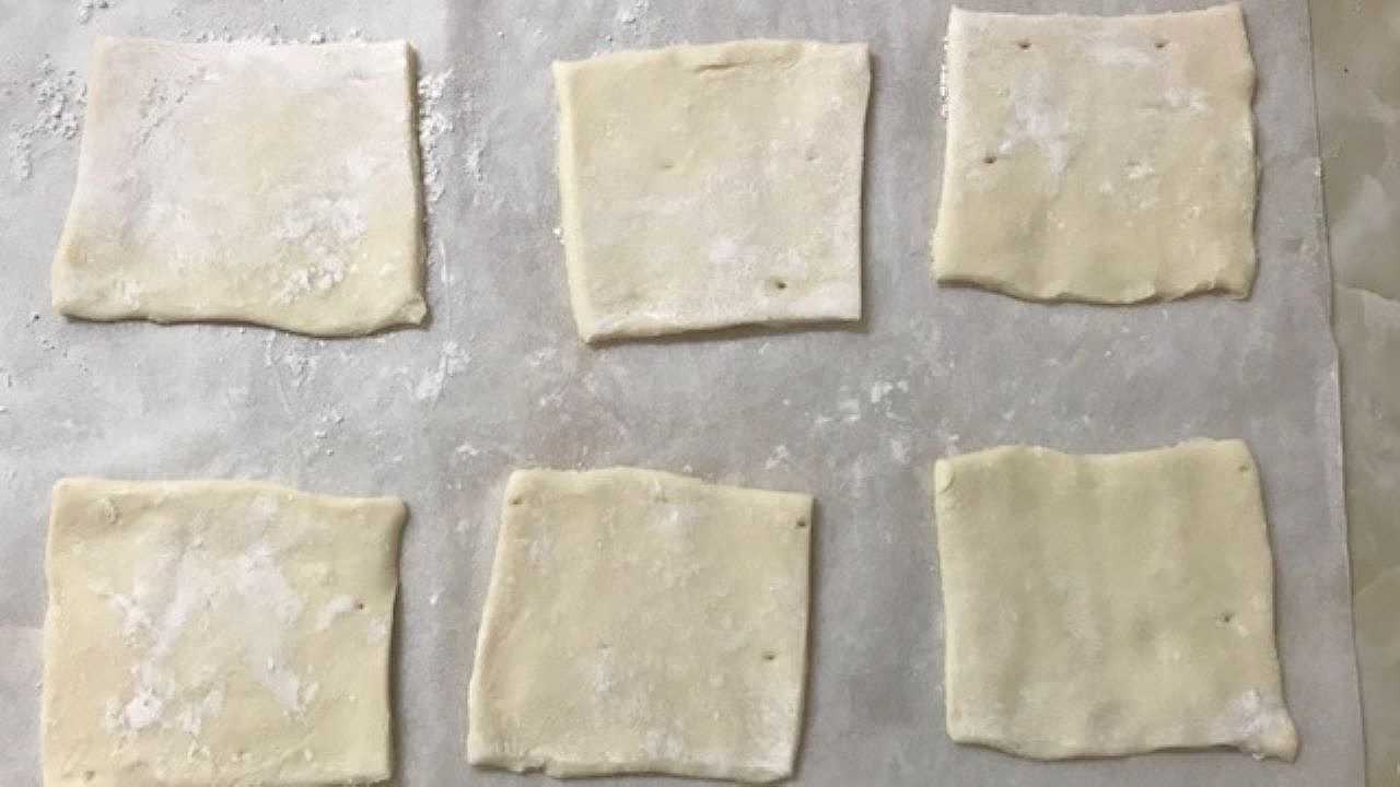 ○パイ生地は、幾重にも折り重なったバターの層でできています。このバターを溶かさないことがサクサクに仕上げるコツです。生地の温度を上げないように手際良く扱い、こまめに冷蔵庫で冷やすことが大切です。