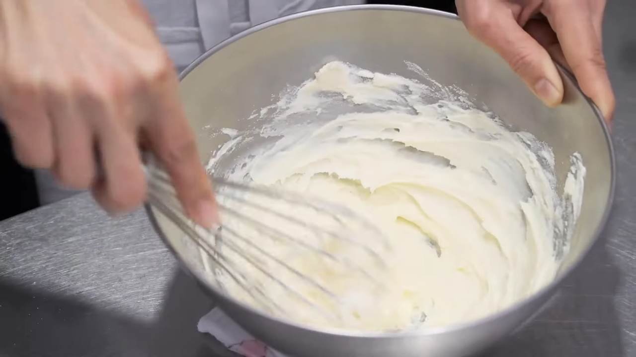 クリームチーズをほぐして柔らかくし、バニラシュガーを加えて材料が馴染むまで混ぜる。