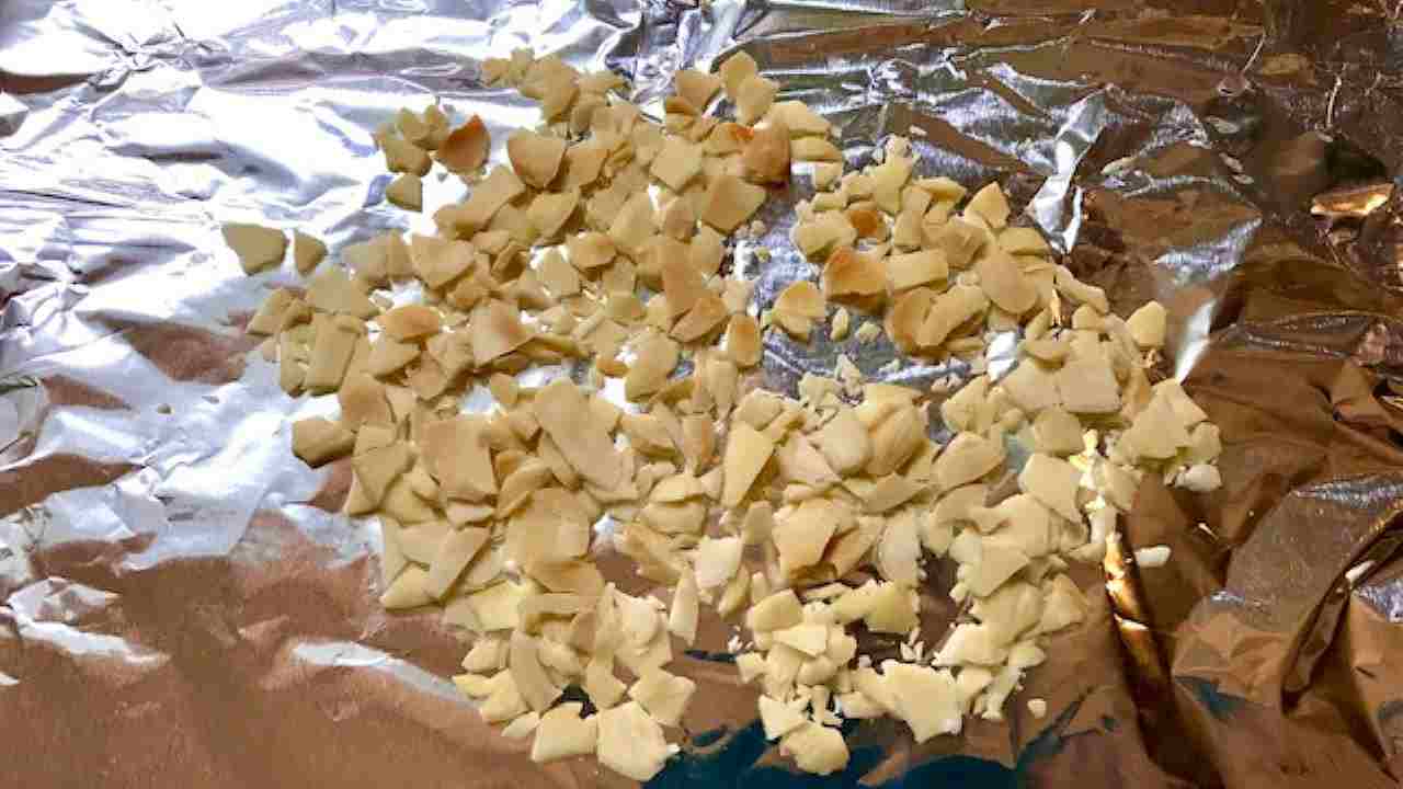 アーモンドスライスは細かく刻み、130℃のオーブンで10~15分焼きます。