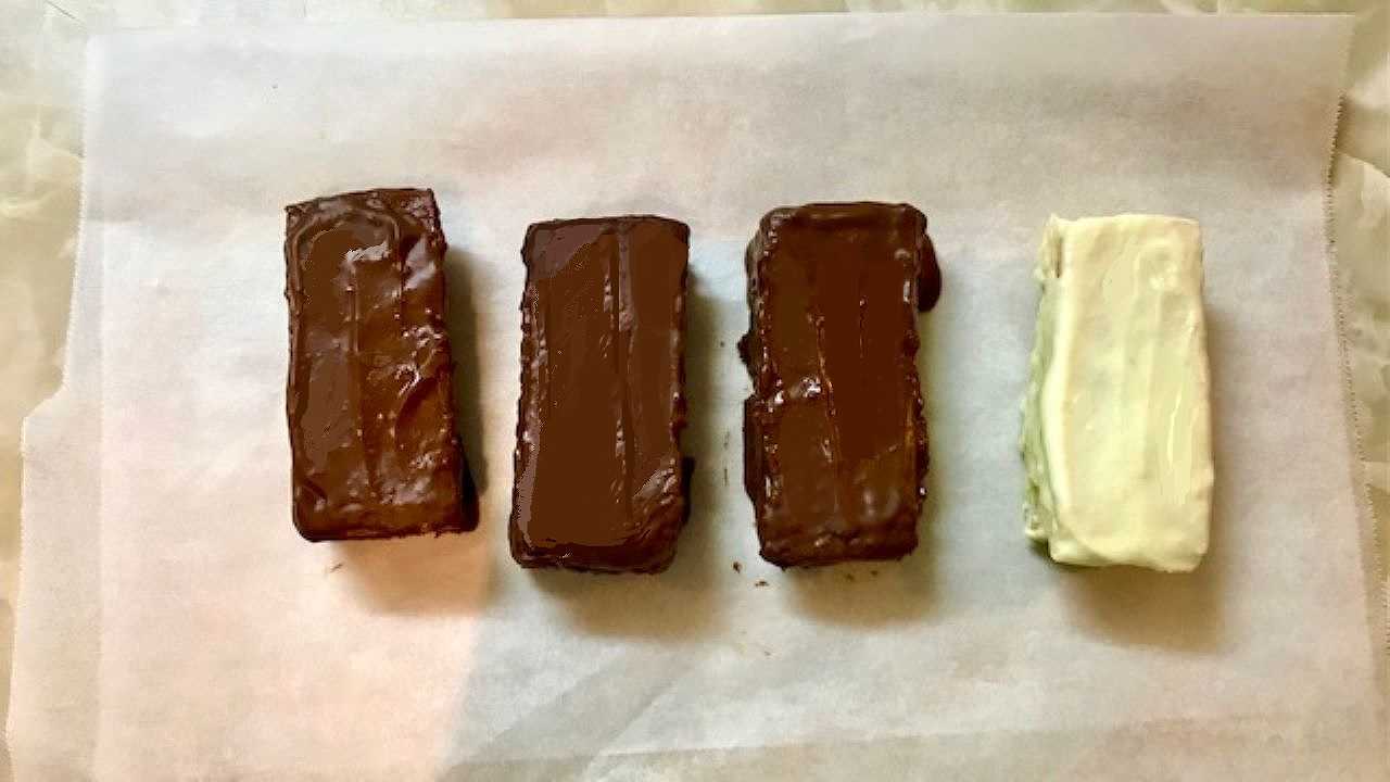 ○ 切り落とした端のパイも9の工程でチョコレートコーティングすると美味しく召し上がれます。