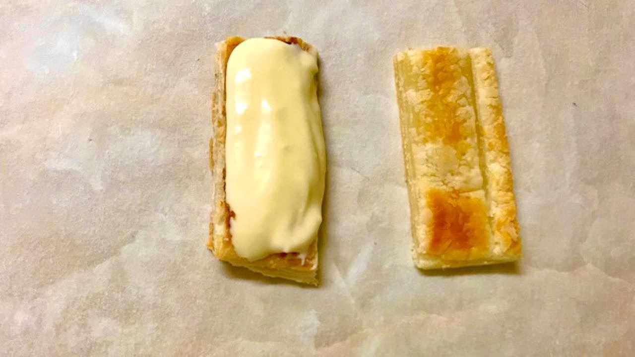 冷めたパイ1枚に6のクリームを塗り、もう1枚でサンドします。