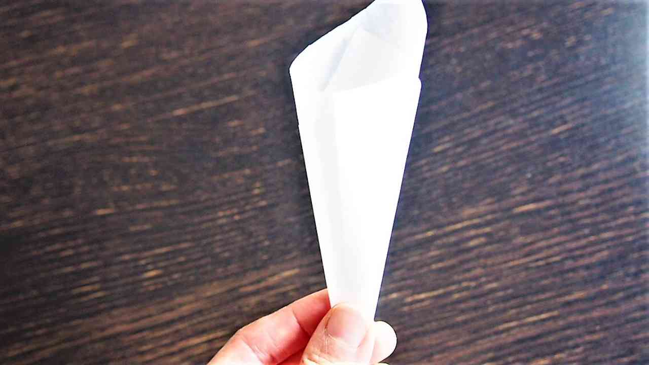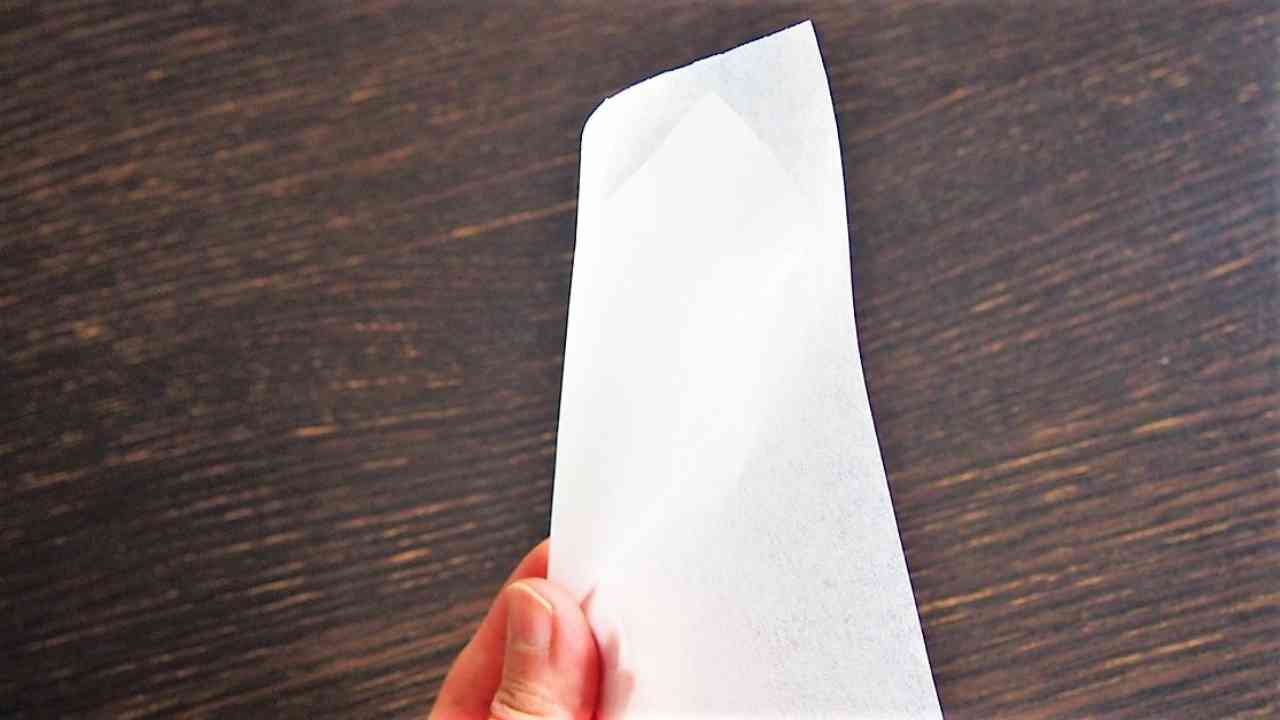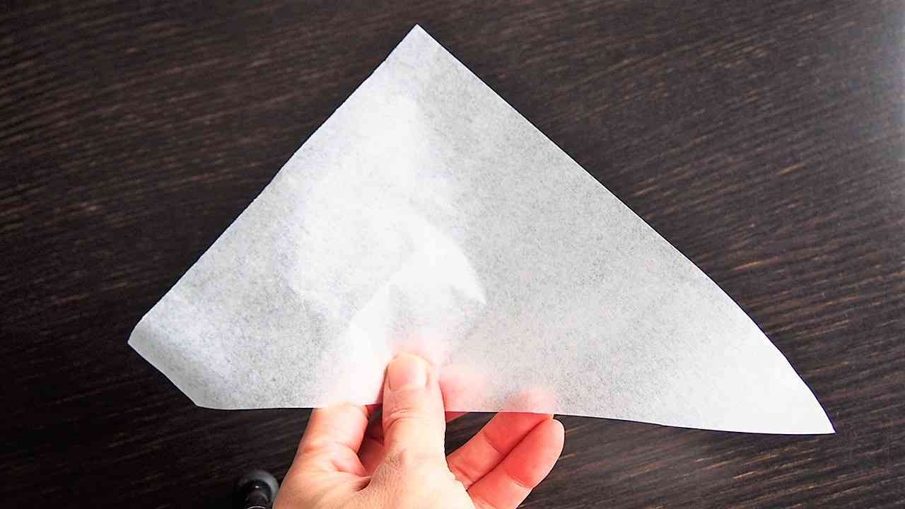 クッキングシートの終わり目が外側になるよう折り込む。
