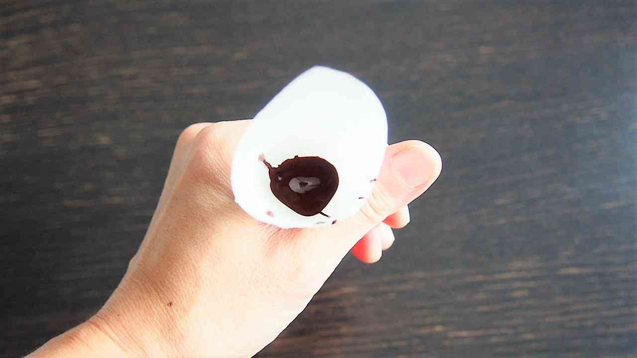 中に溶かしたブラックチョコレートを入れる。