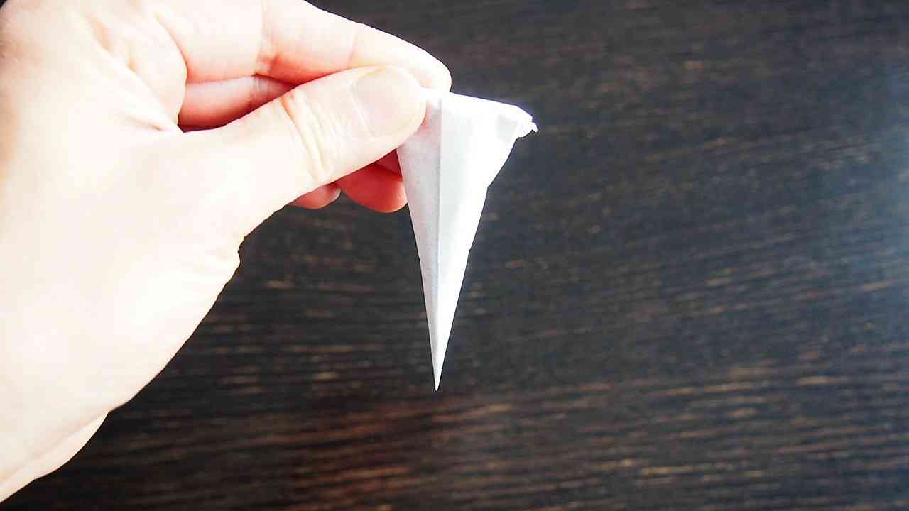 直角の真下を抑えてくるくると巻く。