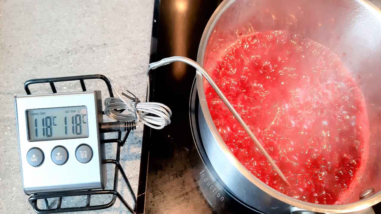 手鍋に戻し弱火にかけ、80度になるまで温める。