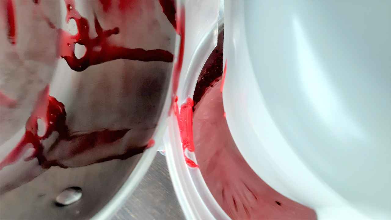 その間に色粉を入れた砂糖と水の入った手鍋を火にかける。
