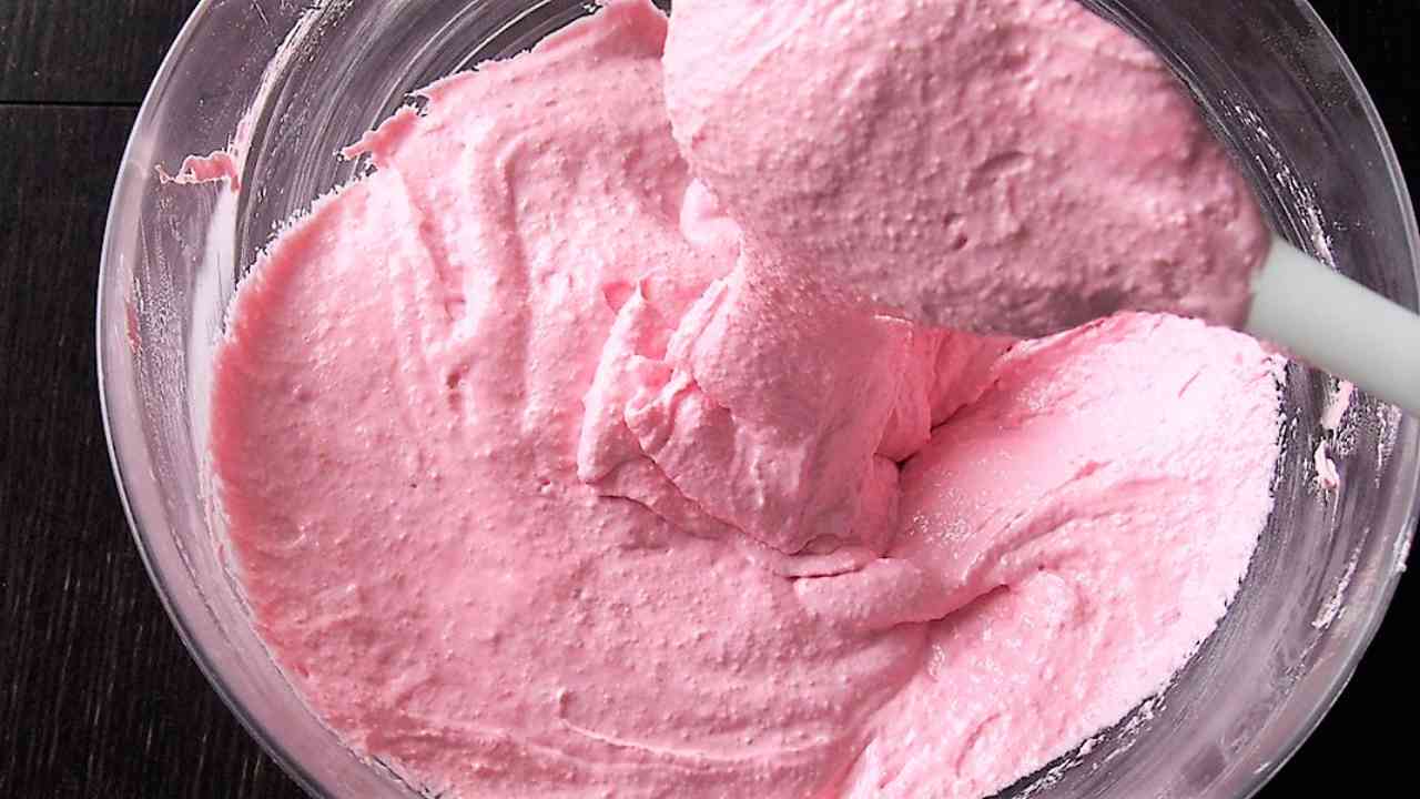 ここで分離するので残りの⑤を少しづつ入れてその都度しっかりと混ぜ、つやのあるクリームにする。