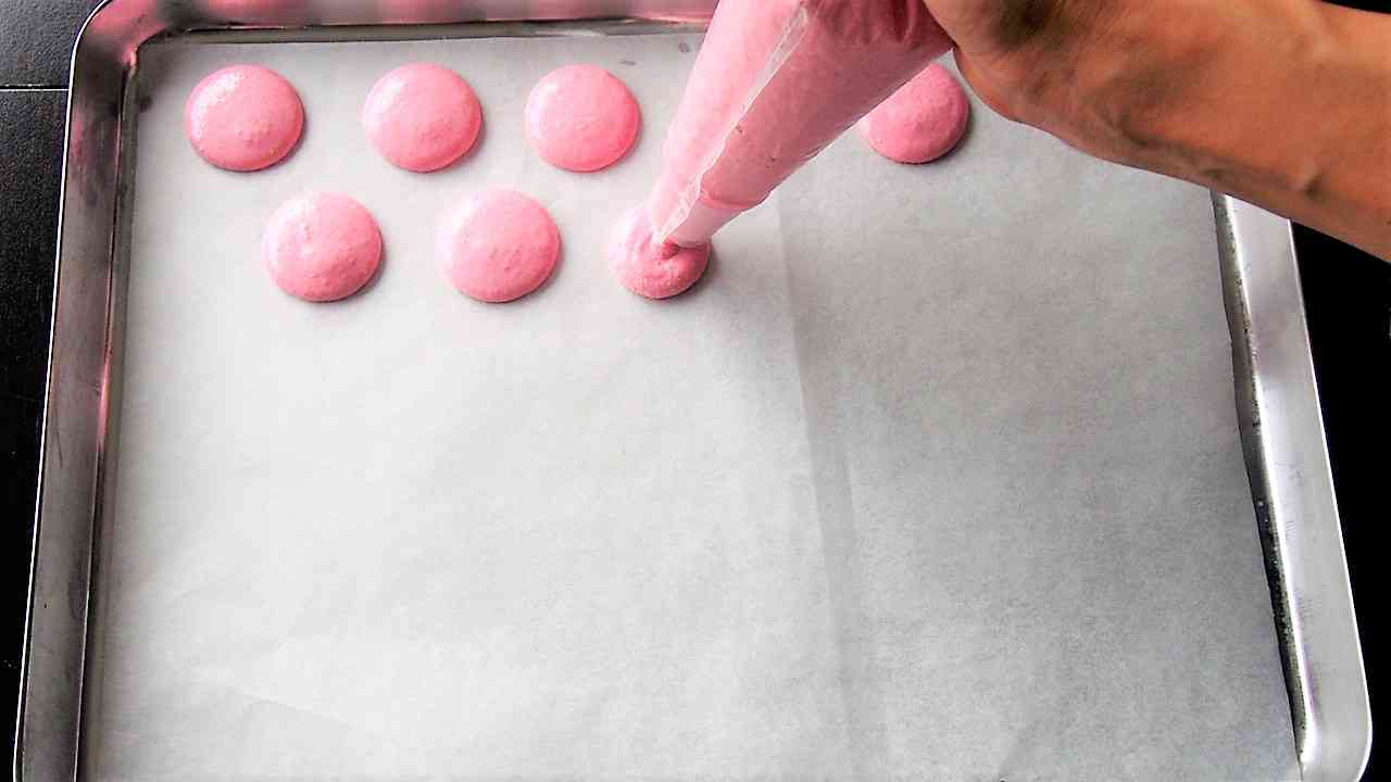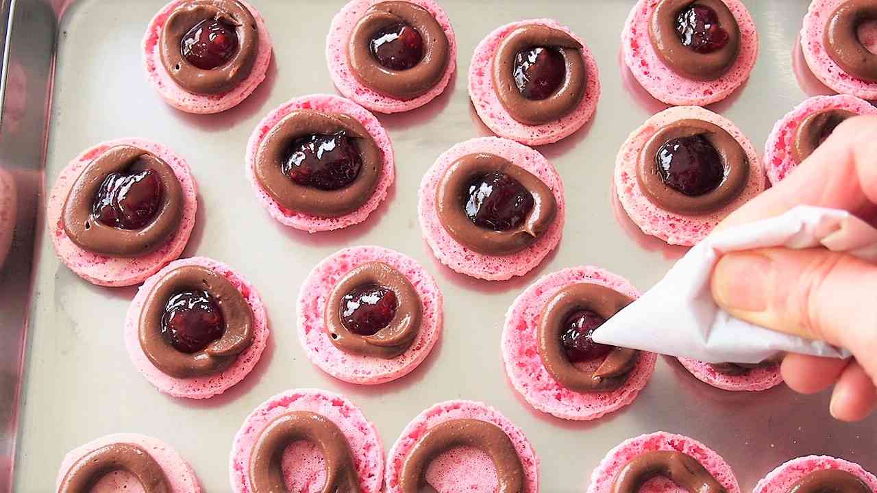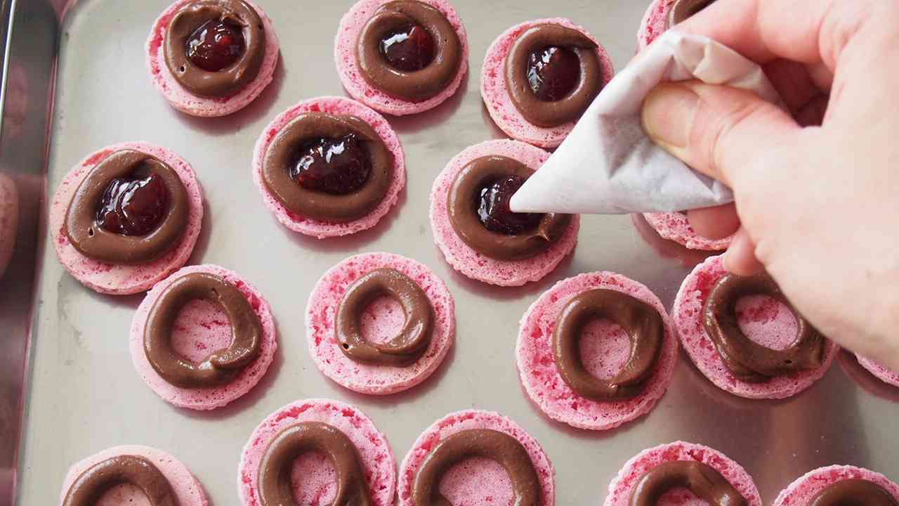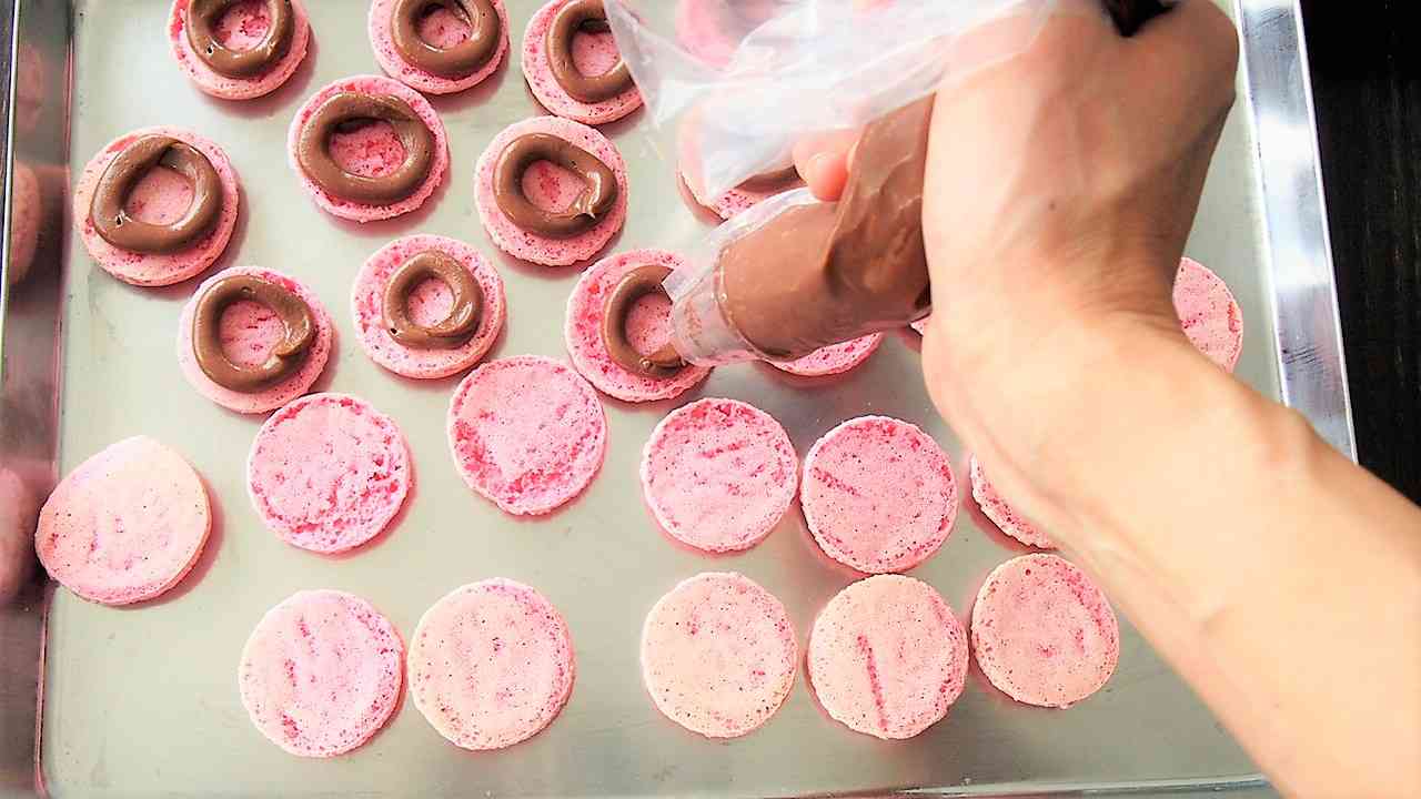 チョコレートクリームを絞り袋に入れてマカロンの外側に絞る。