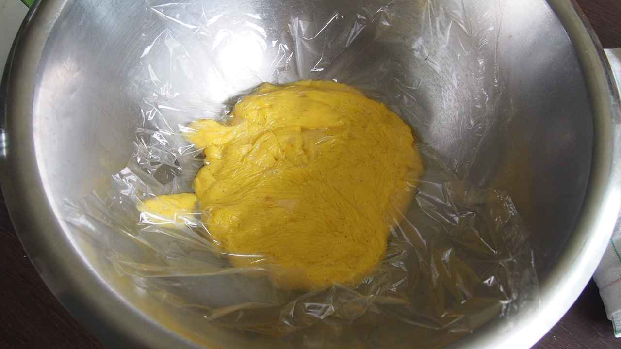 ボウルに移し、乾かないようクリームに密着するようにラップをかけ冷やす。