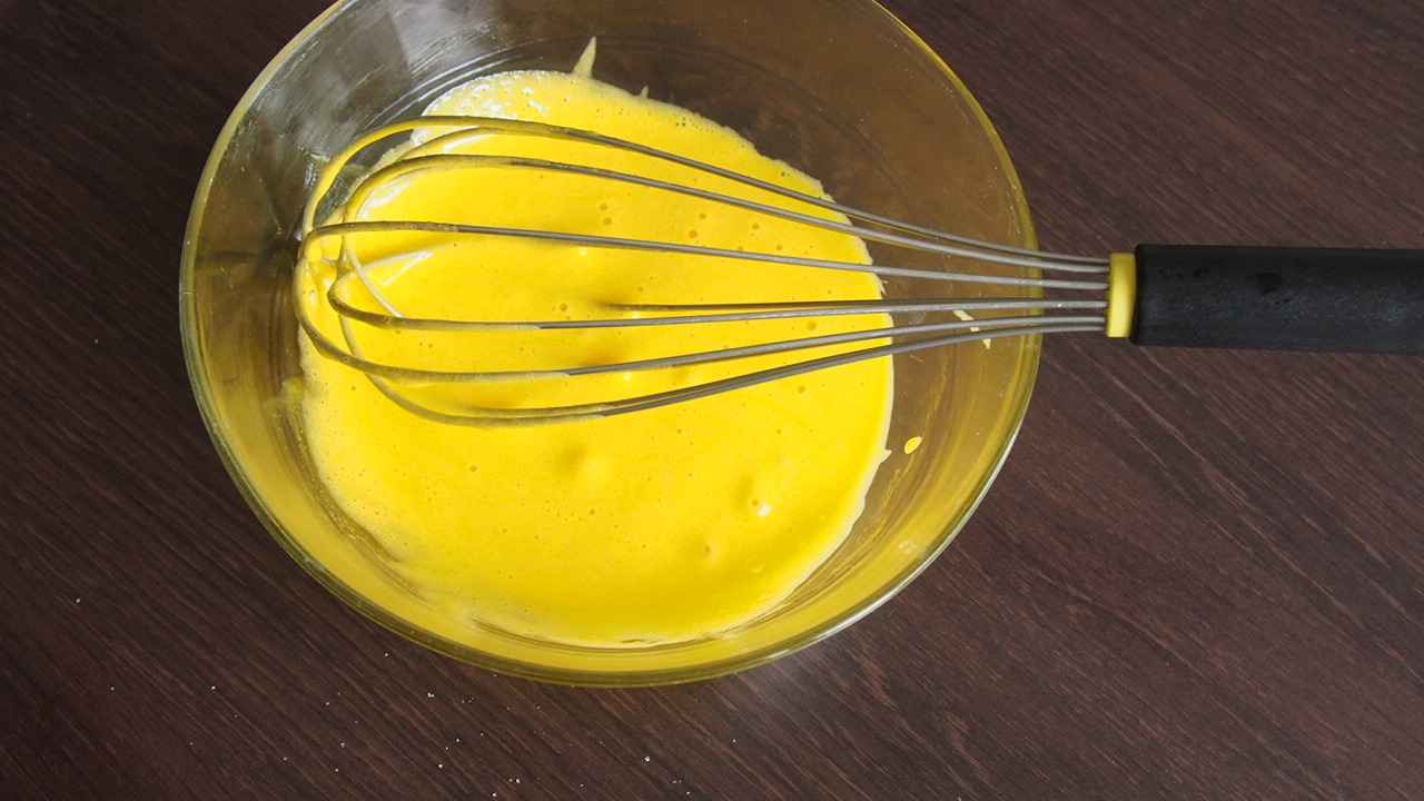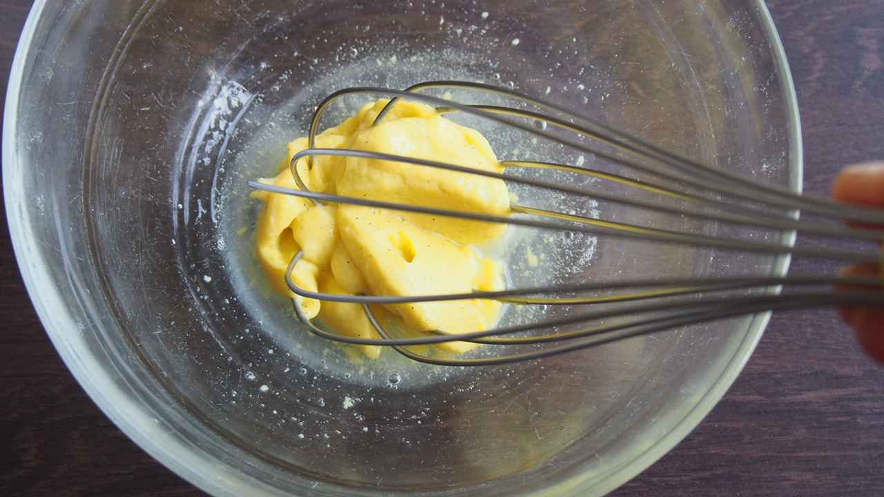 卵黄にグラニュー糖を加え、よくブランシールする。