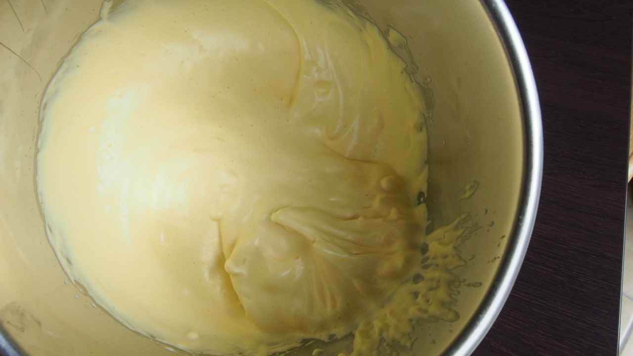 ゼラチンをカスタードに加え、よく混ぜ合わせる。