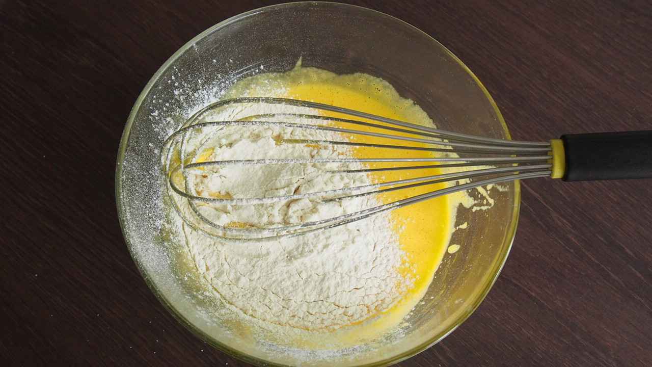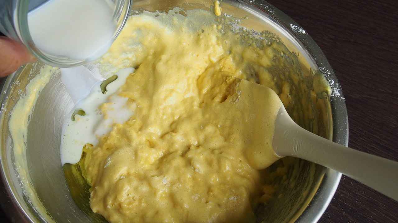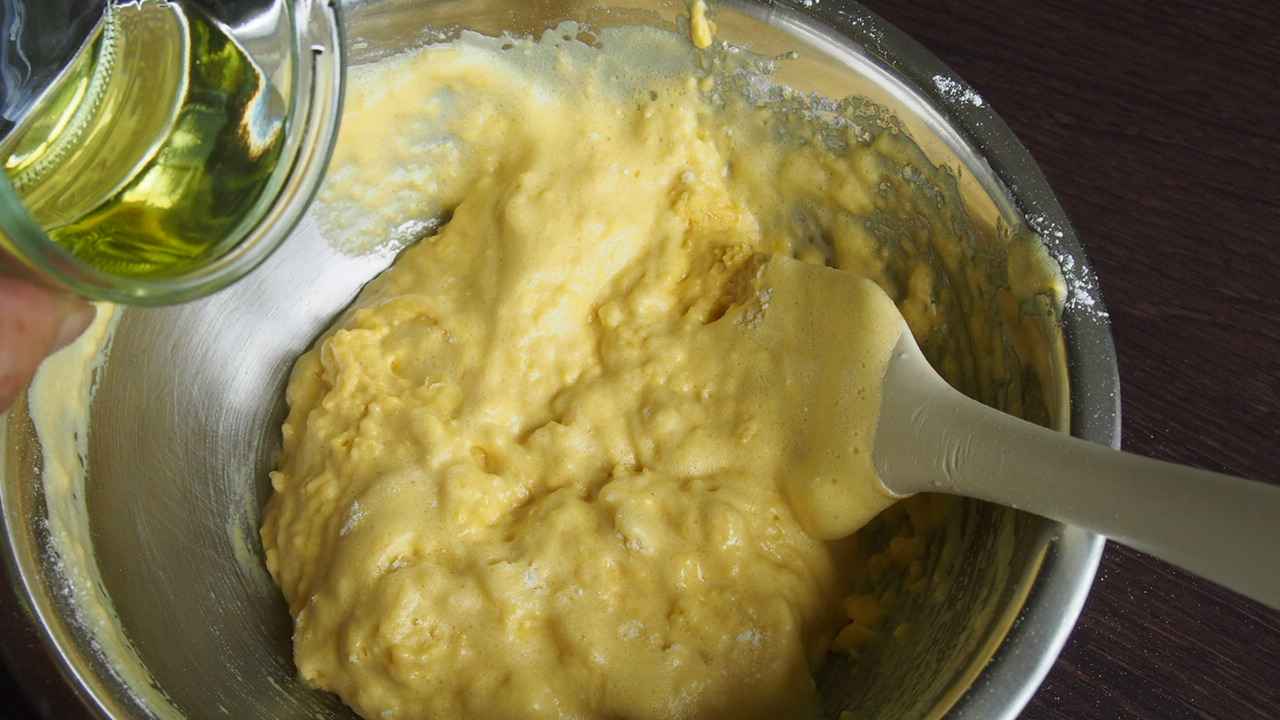 両方の全卵生地を作り2つに分けてから粉類を混ぜる。