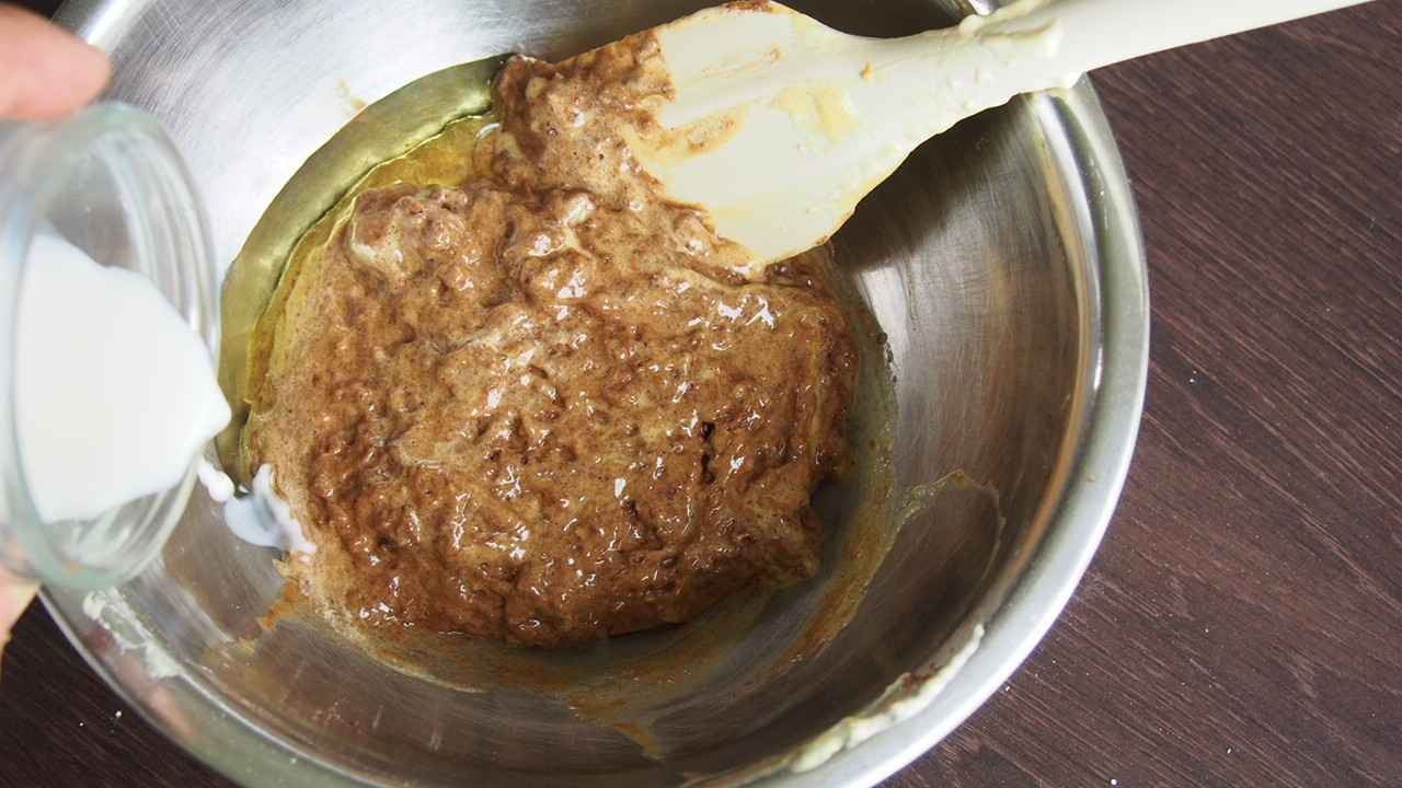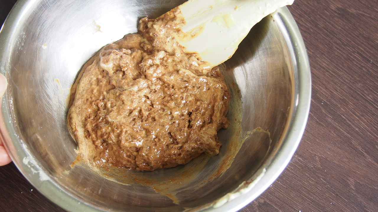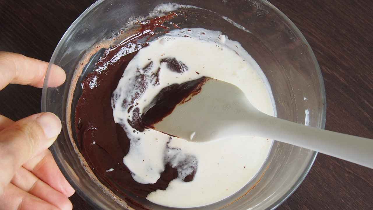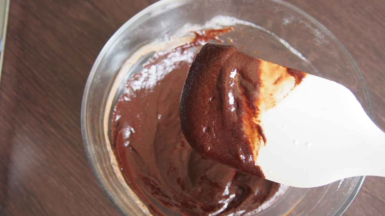 同様にしてココア生地も粉類と合わせ混ぜる。