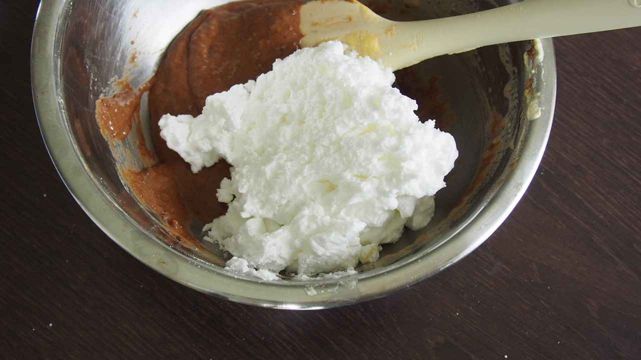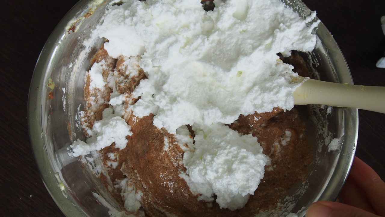 両方の生地のメレンゲを立て、2つに分け、それぞれに混ぜ合わせる。