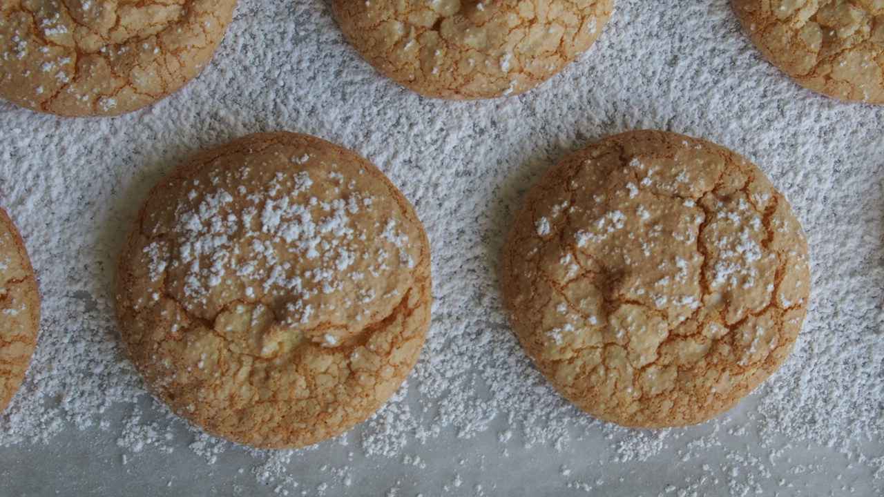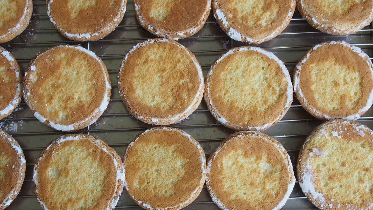 粉糖を2回ふるいかけ、160℃で10分焼く。