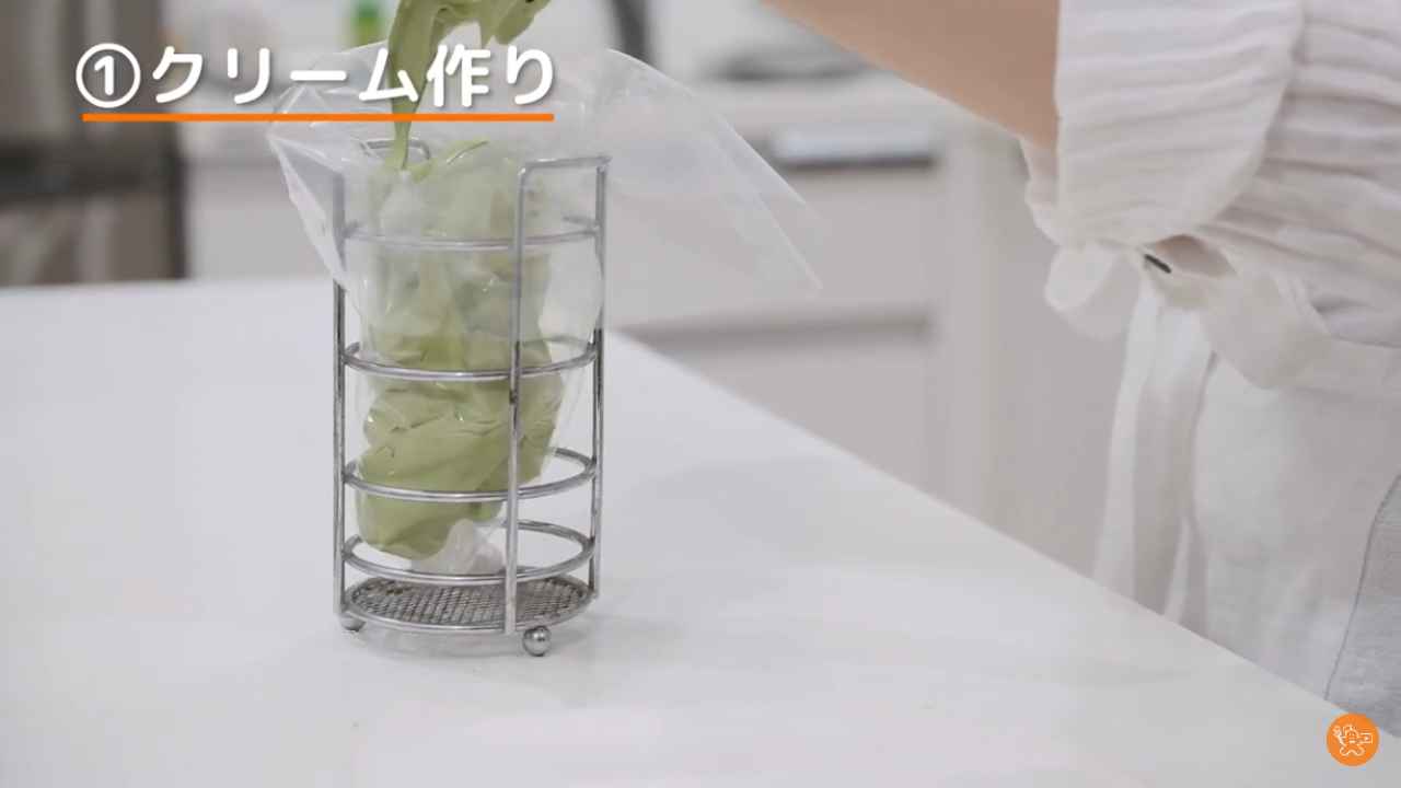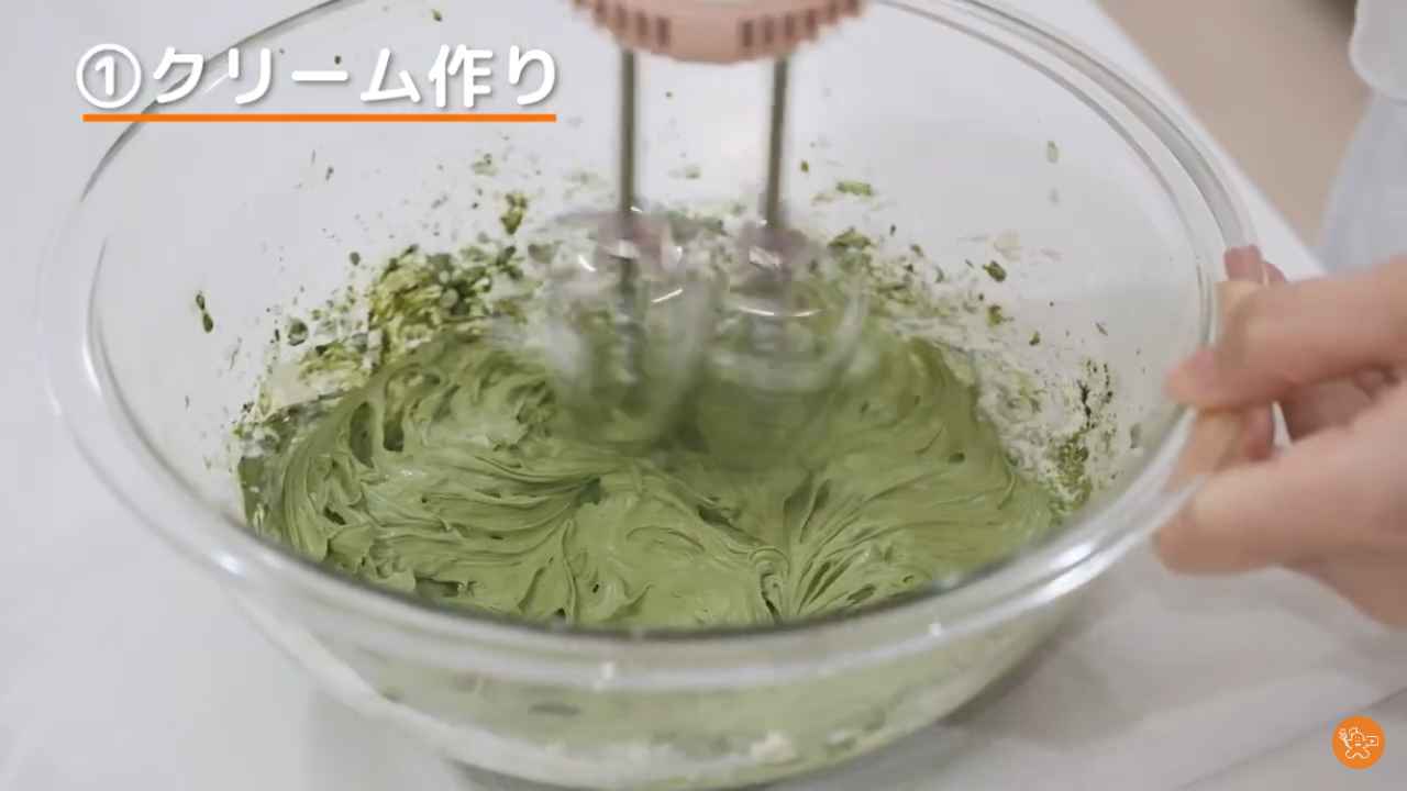 抹茶パウダー、レモン果汁を加えて混ぜ合わせる。