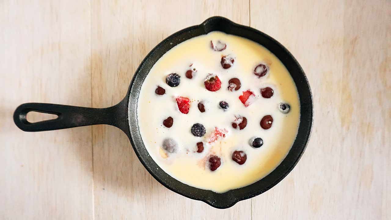 型にはスキレットを使って、そのままテーブルに出せるようにオシャレに仕上げました。