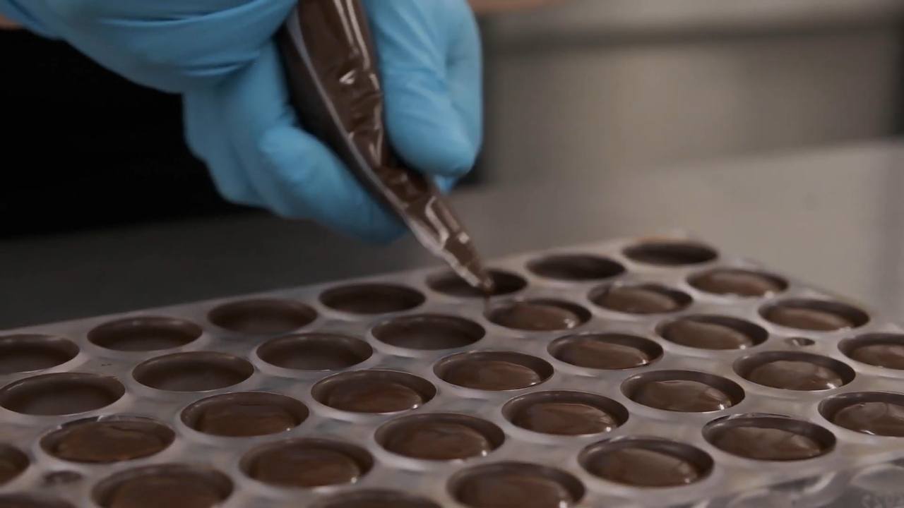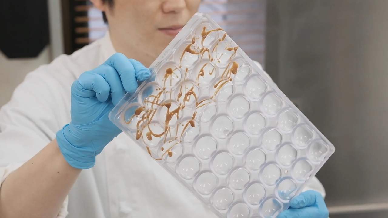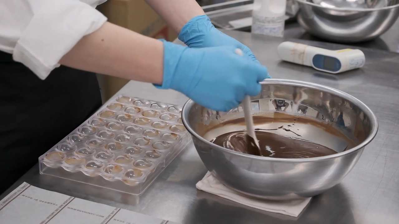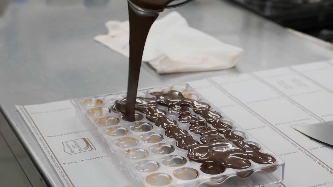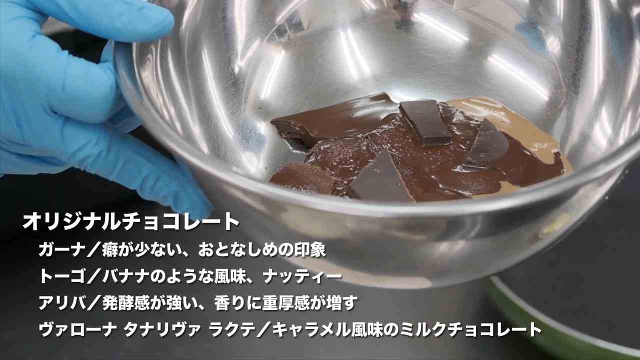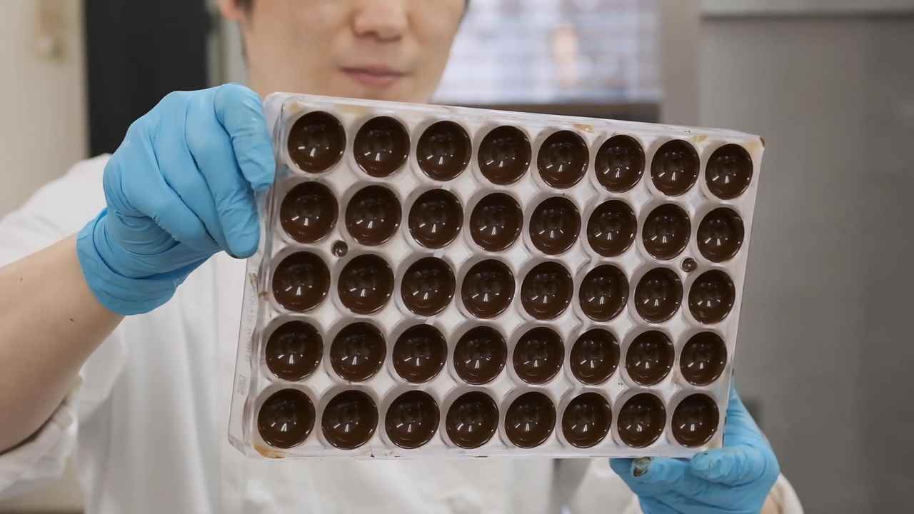 カカオハスク(カカオ豆の皮)の風味を閉じ込めたボンボンショコラを紹介します。ポイントは、カカオハスクをフライパンで炒ってしっかりと香りを出すこと。ショコラティエである須藤さんの華麗なチョコレートさばきも見所です。出身地である青森県で店を構えながら、都内百貨店の催事にご本人が販売する機会もあります。