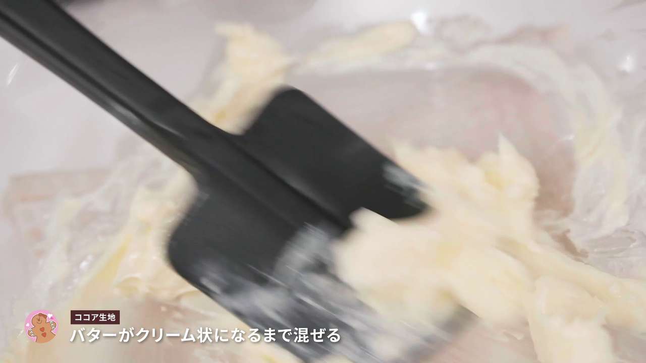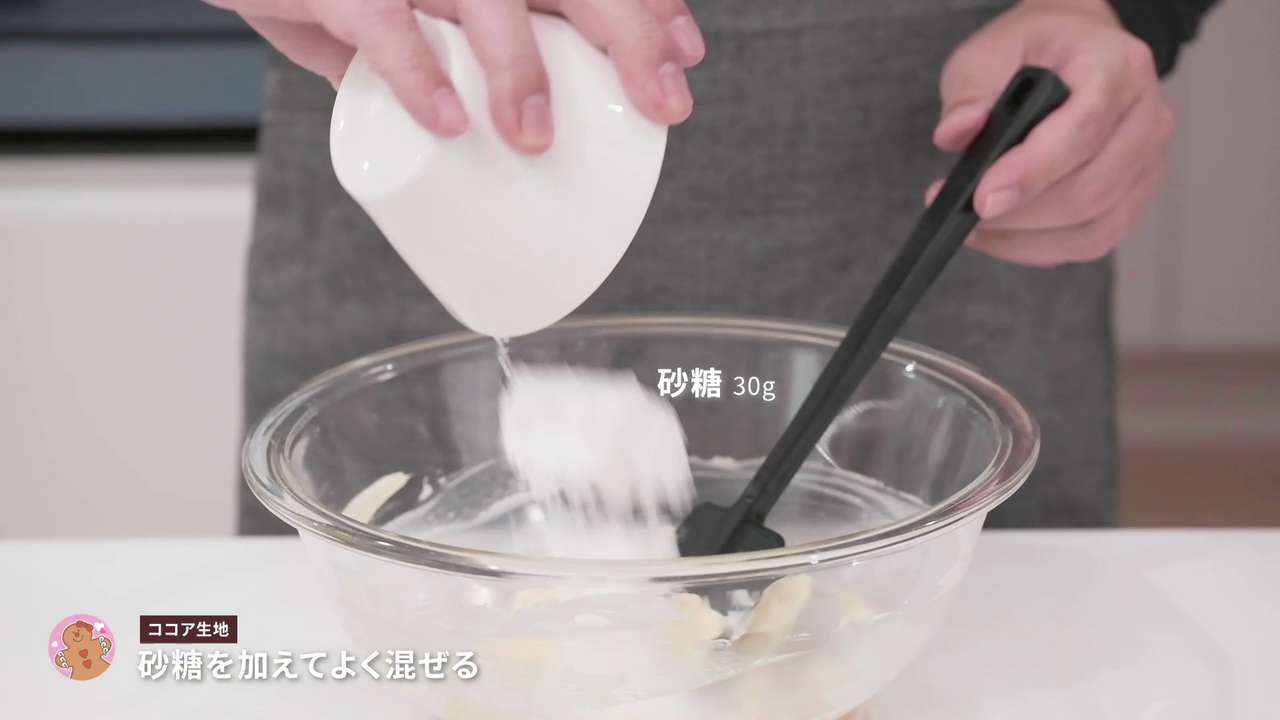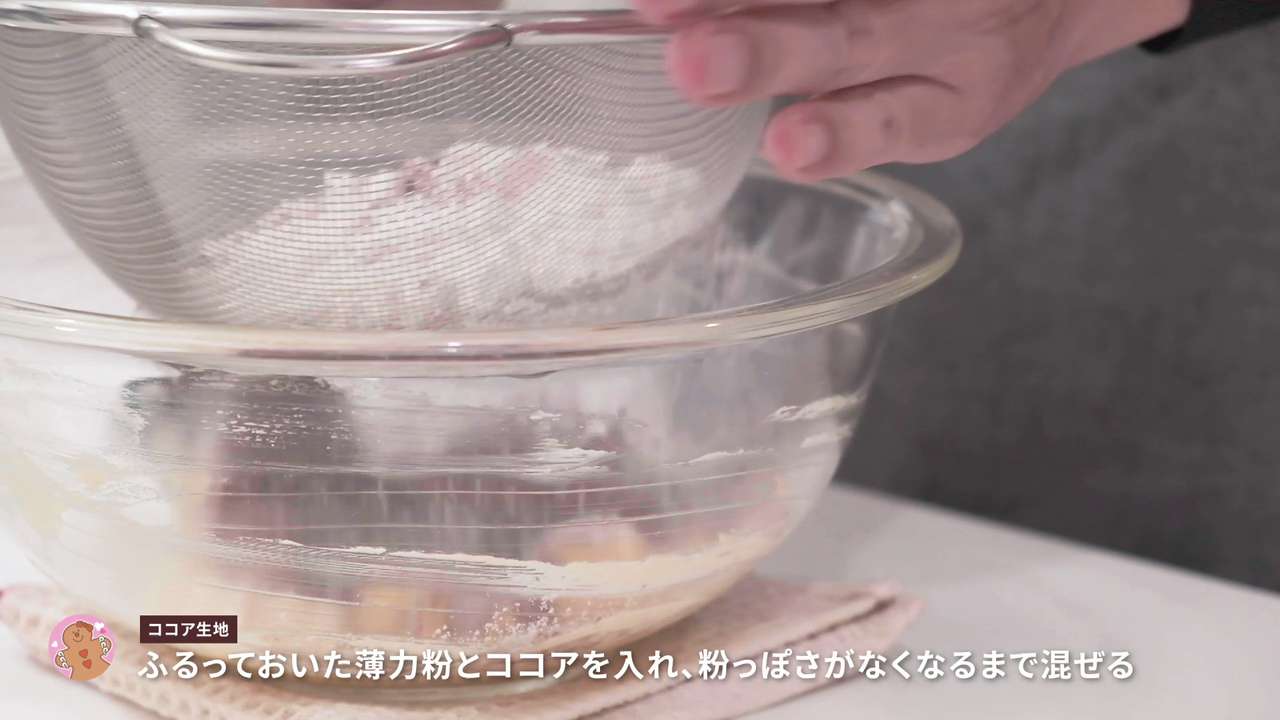 ふるっておいた薄力粉とココアを入れ、粉っぽさがなくなるまで混ぜる- 6
