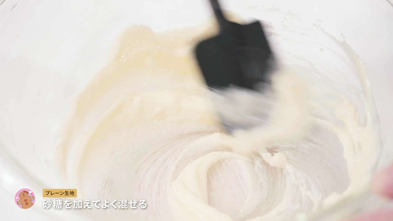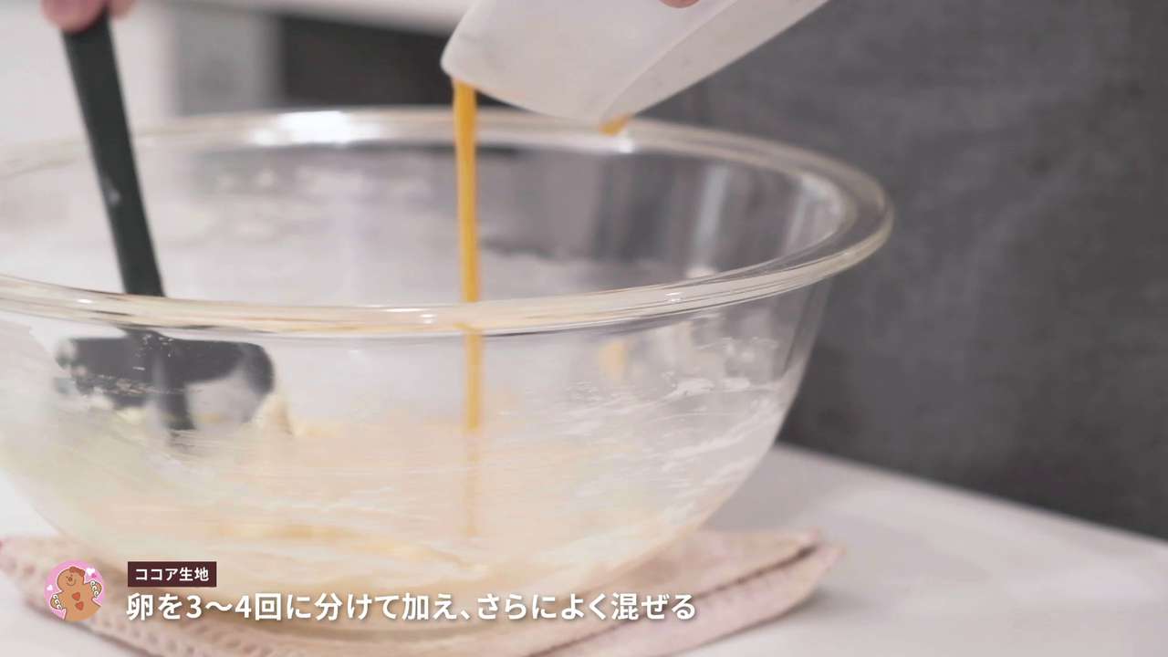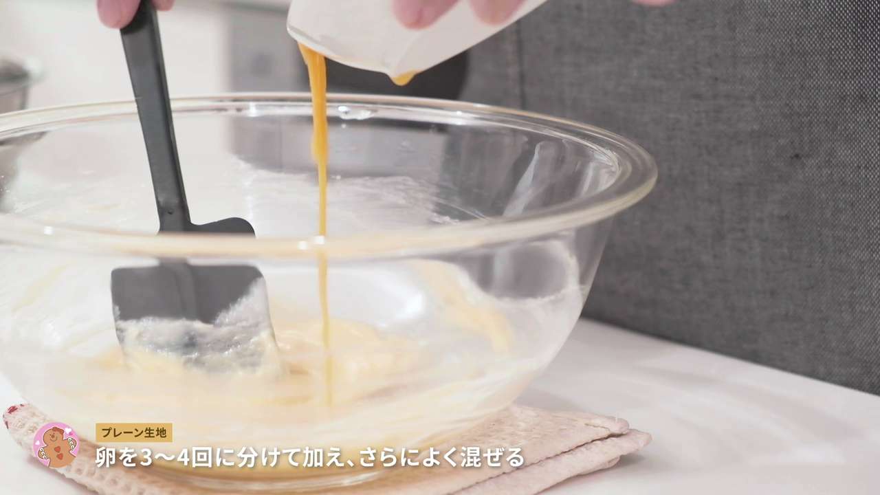 卵を3〜4回に分けて加え、さらによく混ぜる- 4