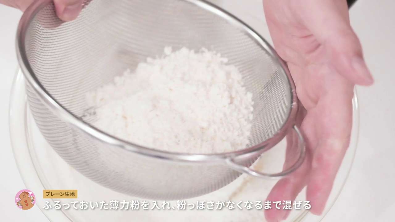 ふるっておいた薄力粉を入れ、粉っぽさがなくなるまで混ぜる- 6