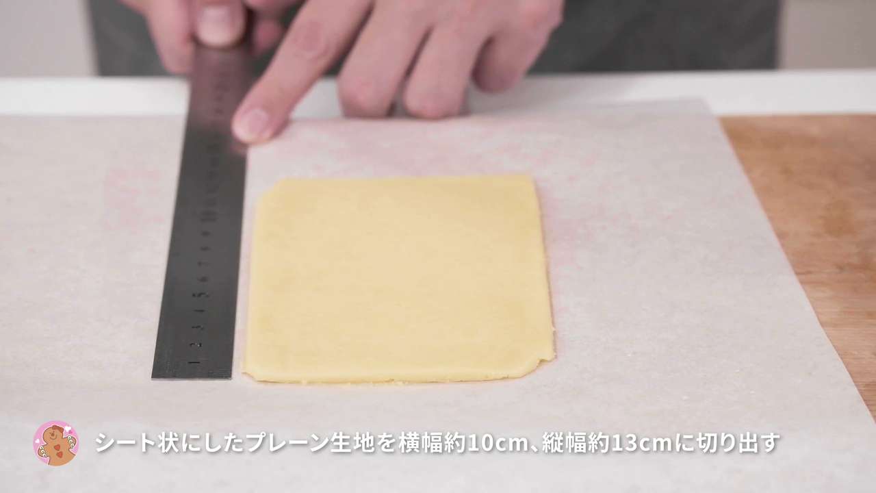 シート状にしたプレーン生地を横幅約10cm、縦幅約13cmに切り出す- 3