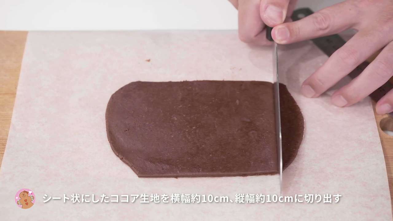 シート状にしたココア生地を横幅約10cm、縦幅約10cmに切り出す- 5