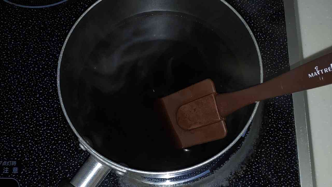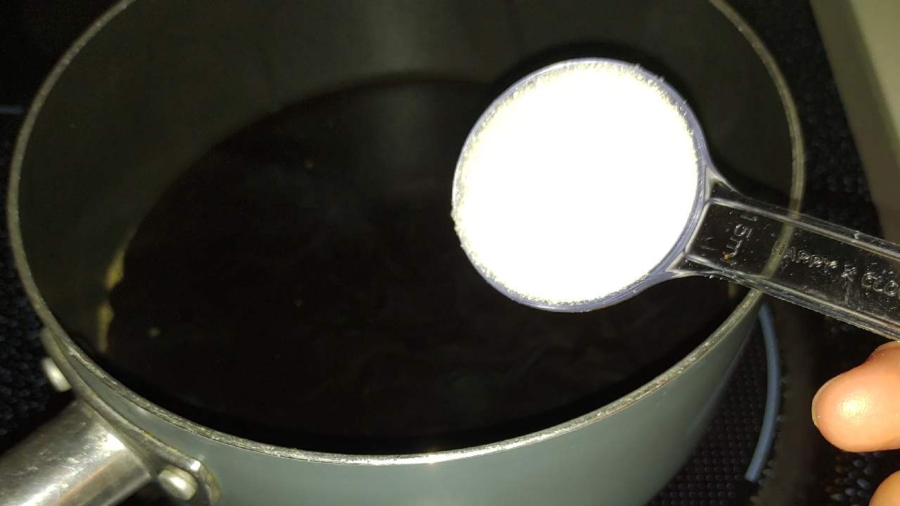 ドリップしたコーヒーを小鍋にうつします。小鍋を火にかけて弱火で温めていきます。そこへグラニュー糖を加えてゆっくりヘラで混ぜ合わせます。