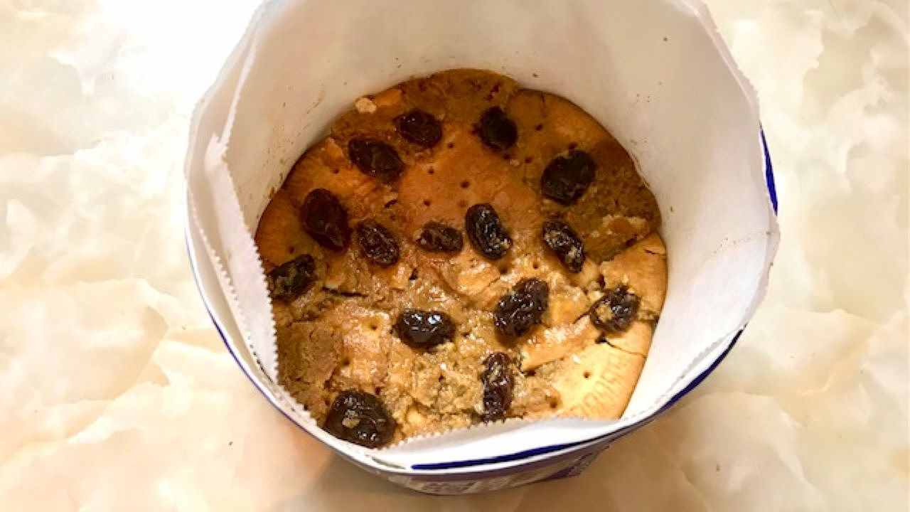 ビスケットを型に敷き詰めます。周囲には、粗く砕いたビスケットをすき間のないよう敷き、ハケでコーヒーシロップを打ち、ラムレーズンを散らします。※型の下にバットなどを敷いておきましょう。底が補強されスムーズに持ち運びできます。
