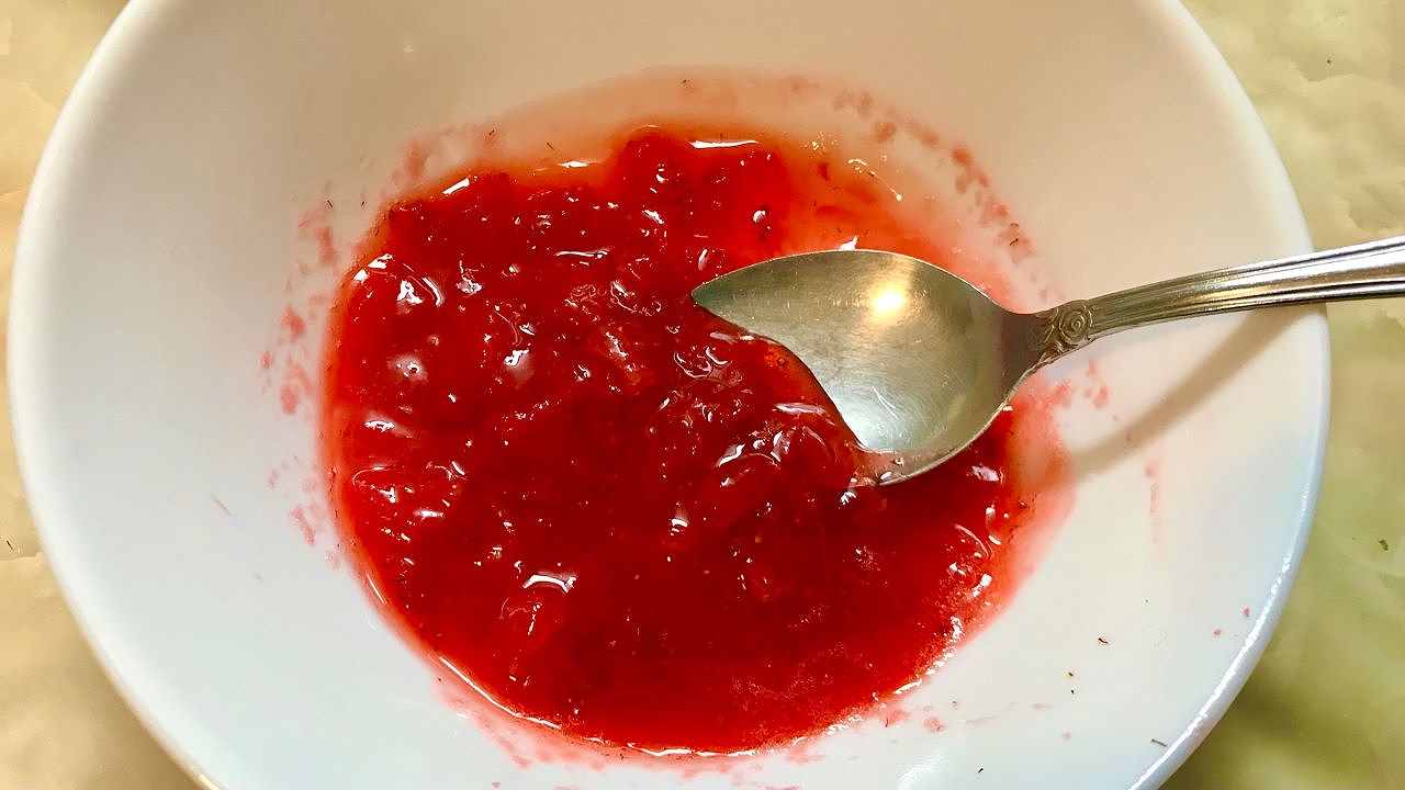 取り出して混ぜ合わせたら、ラップをせずに500Wのレンジで約1分~1分半加熱(少しとろみがつくまで)。再び混ぜ合わせて冷まします。
