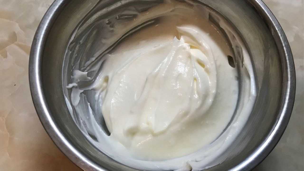 1へ水切りヨーグルトを加えてゴムべらで混ぜ合わせます。