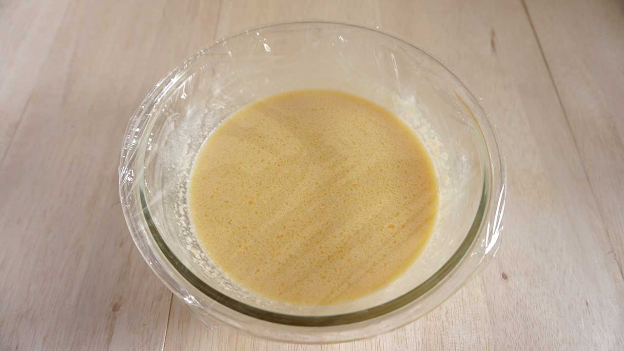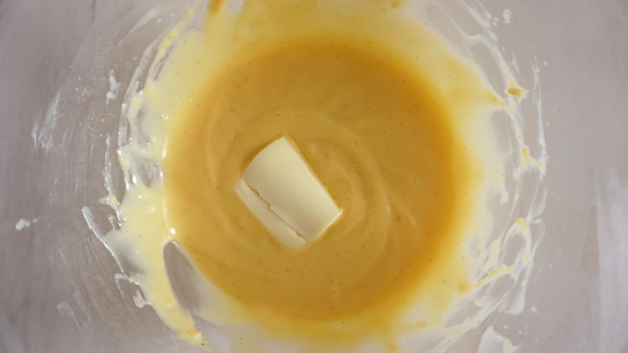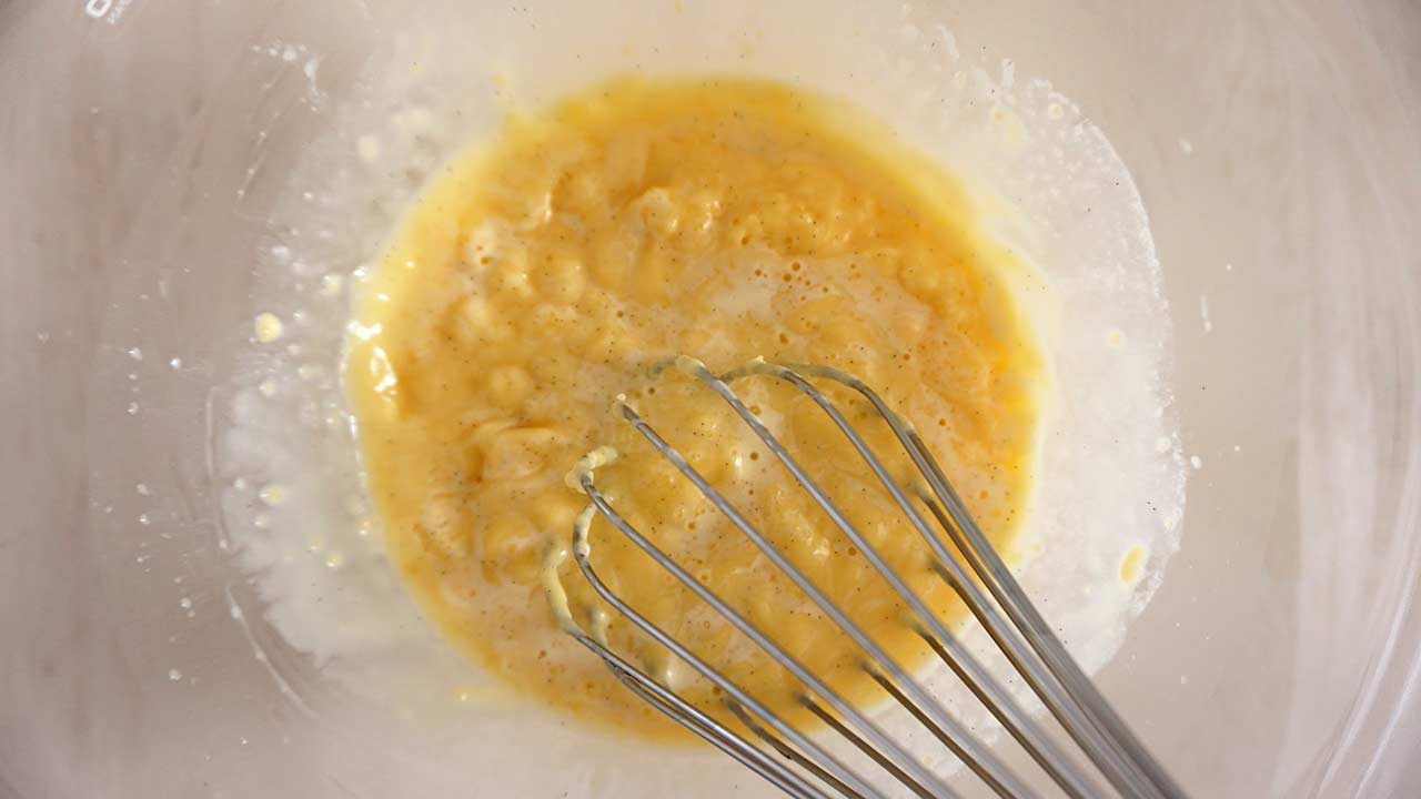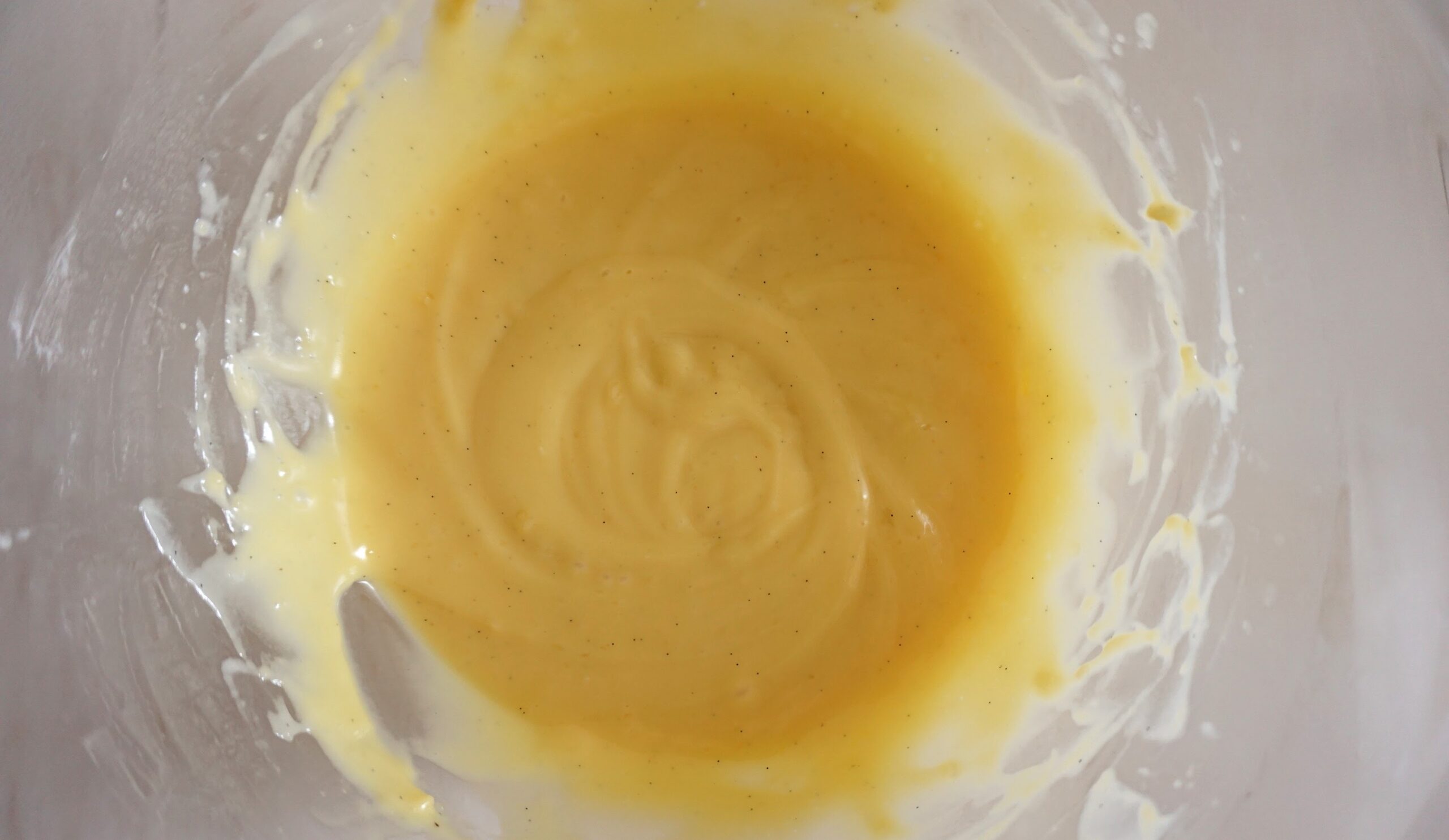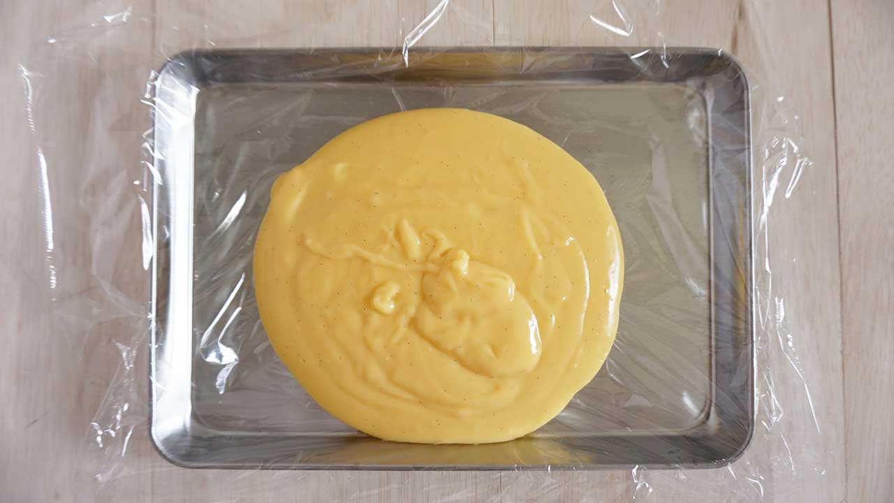 そして、ディプロマットクリームに使うカスタードクリームも、材料を混ぜて電子レンジで加熱するだけ。