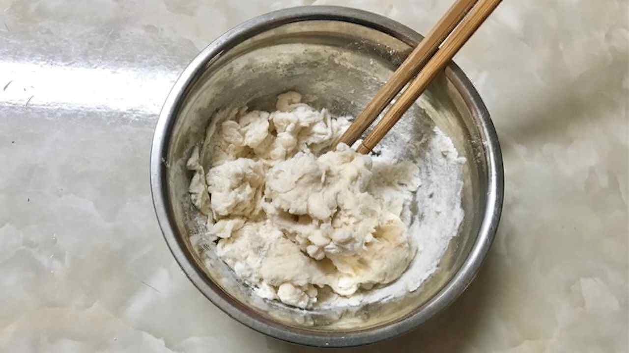 ボウルに材料を入れて菜箸でぐるぐるとかき混ぜて、こねるだけ。
