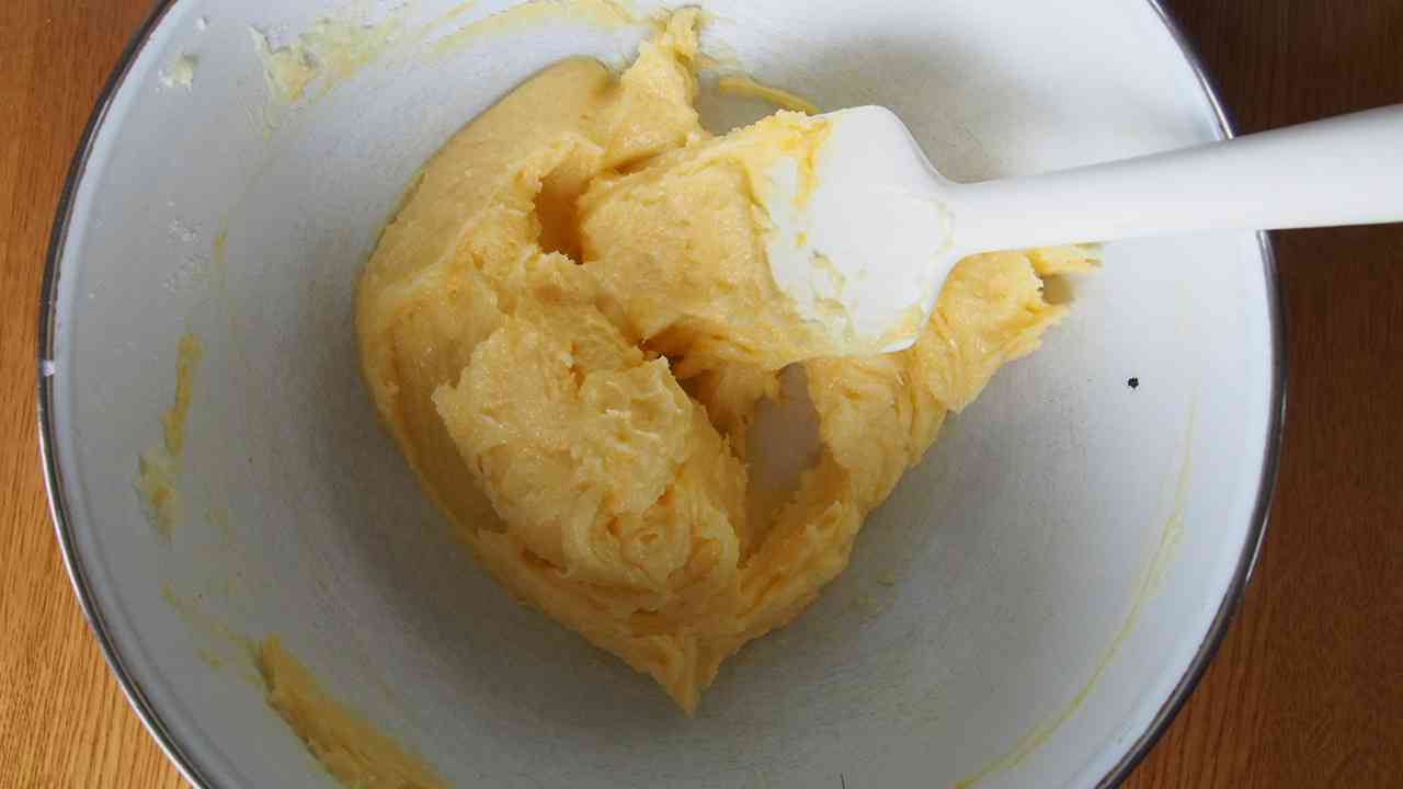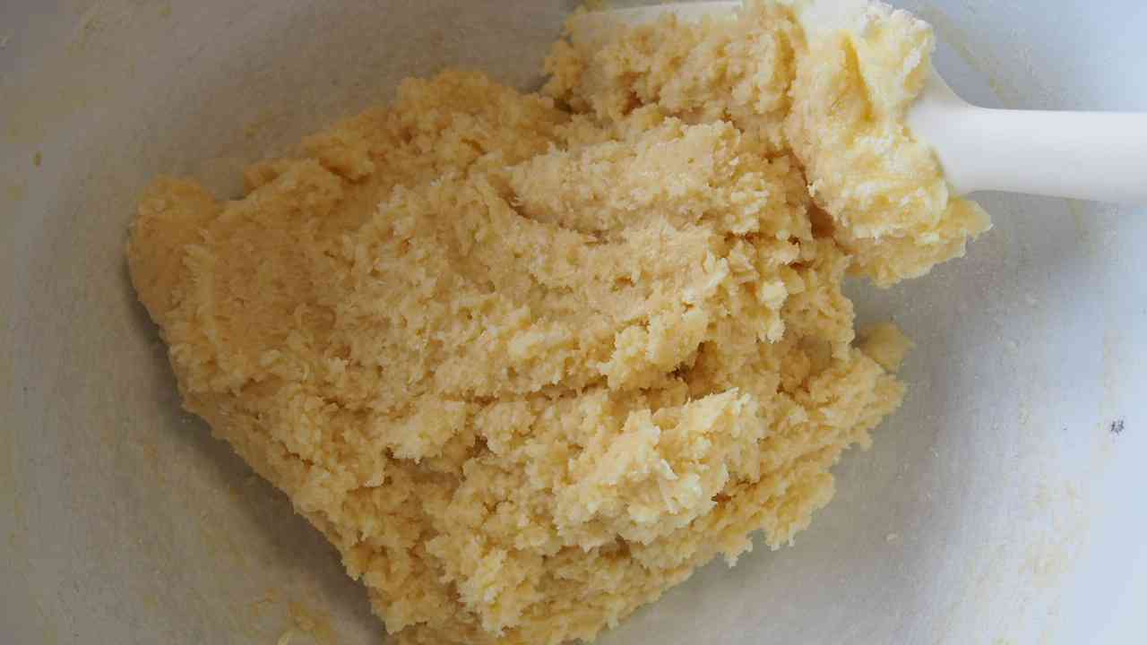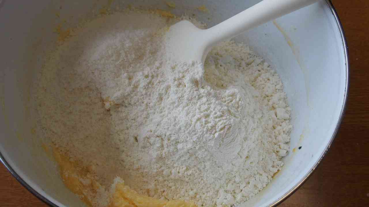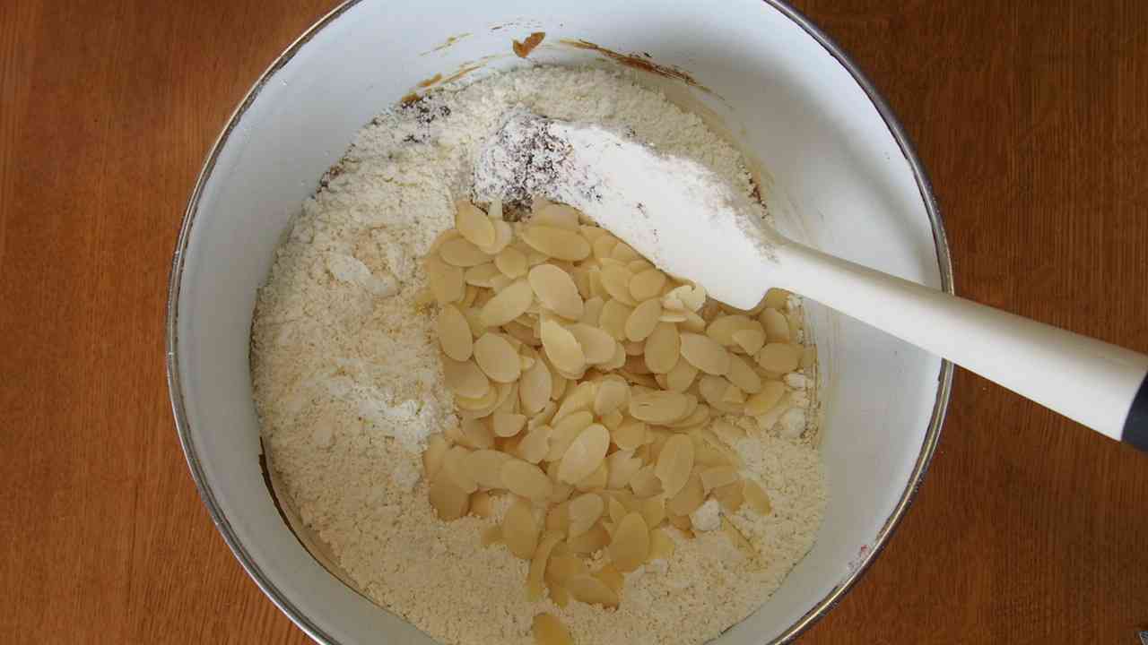 ふるった粉類とアーモンドエフィレを加えてさっくりと合わせる。- 4